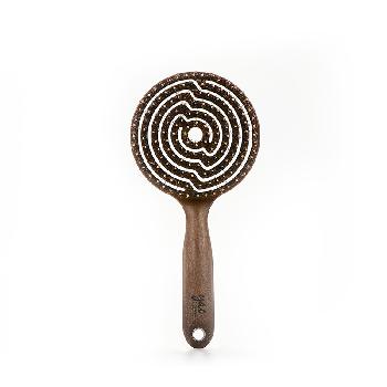 镂空按摩梳 圆形猪鬃毛款 木纹棕