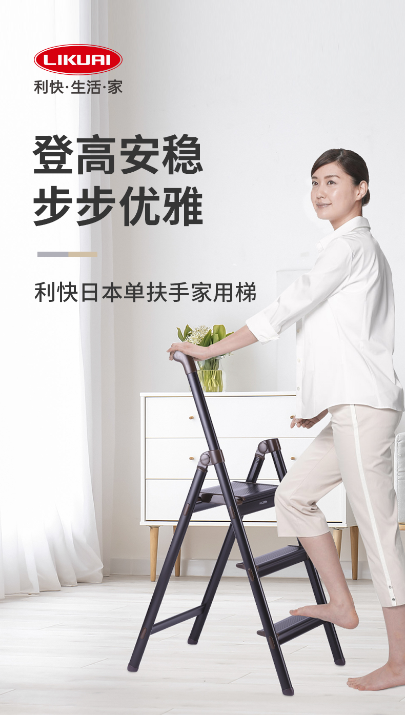 单扶手三层梯子 粉