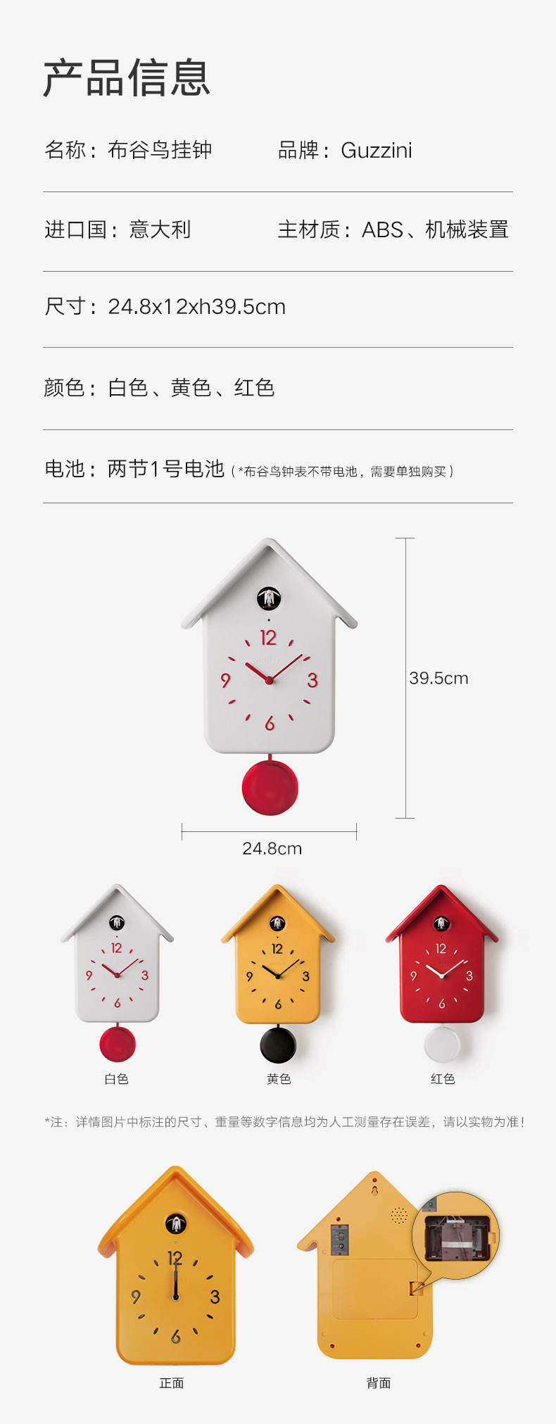 布谷鸟挂钟 黄色 24.8*12*h39cm