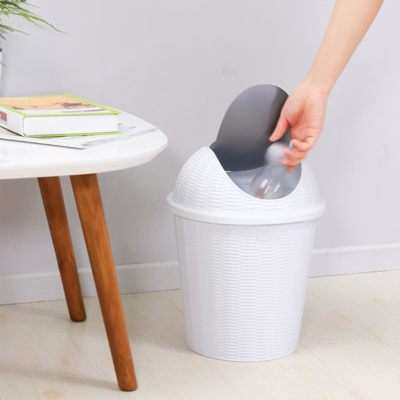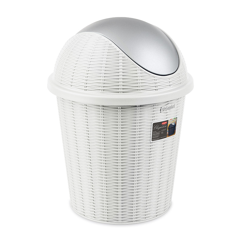 藤编摇盖垃圾桶10L 白色
