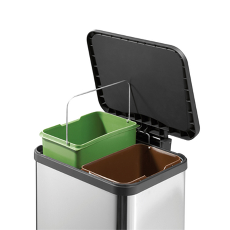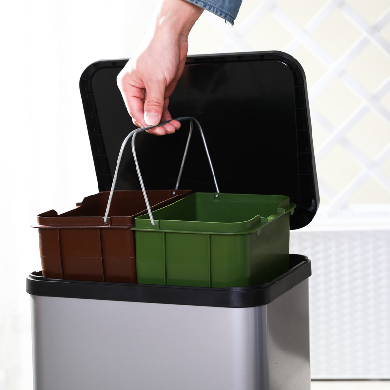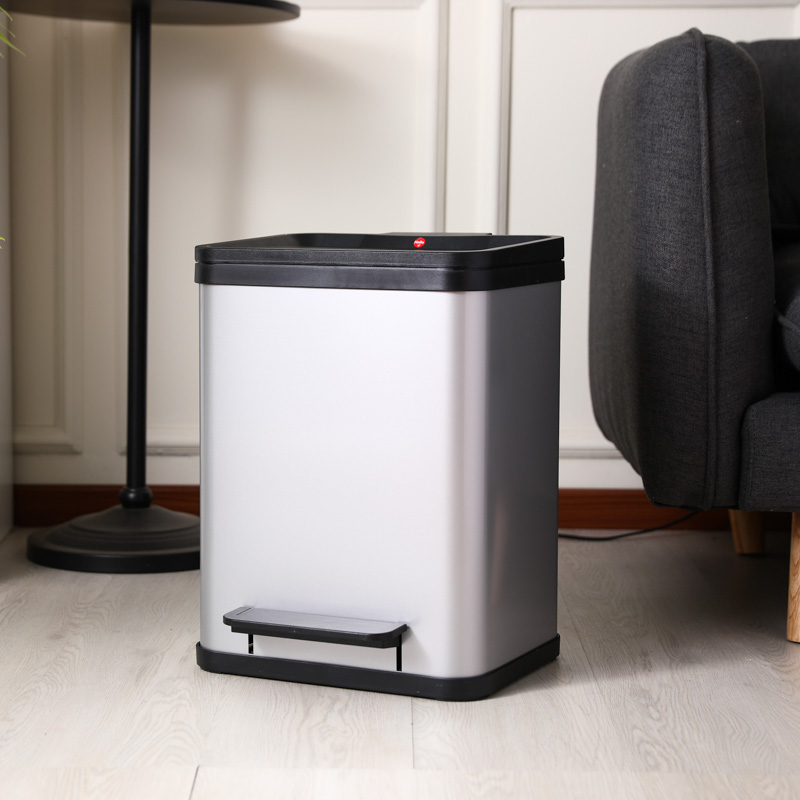 方形静音分类垃圾桶(2个9L内筒) 银色