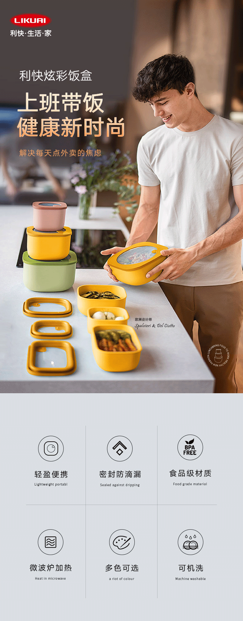 炫彩饭盒储物盒 黄色 1550cc( 16*16*h10.7cm)