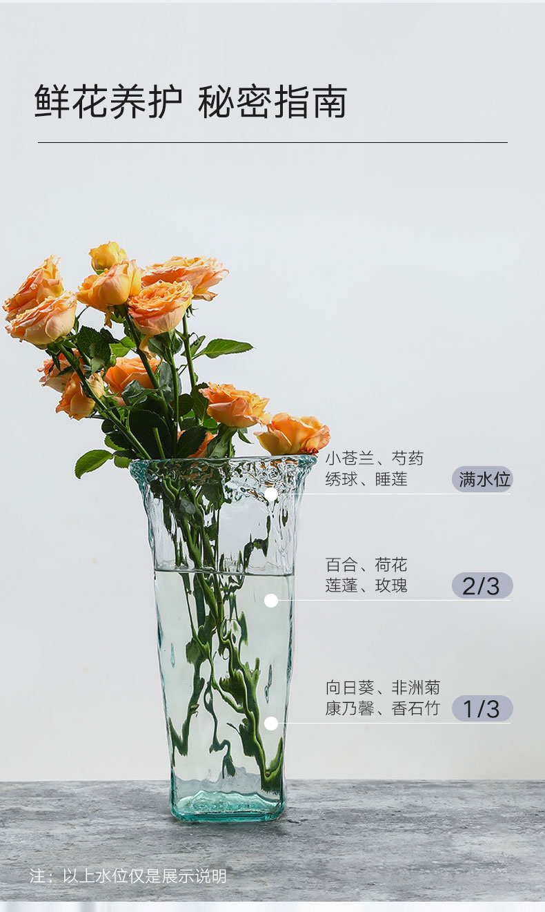 潘多拉玻璃花瓶 褶皱纹 浅蓝 h40cm
