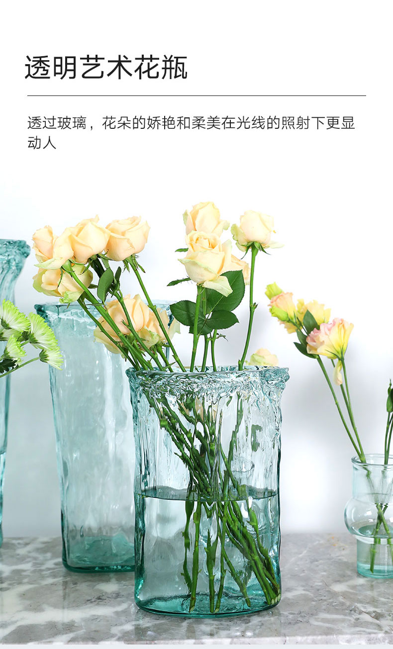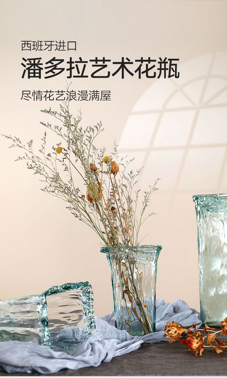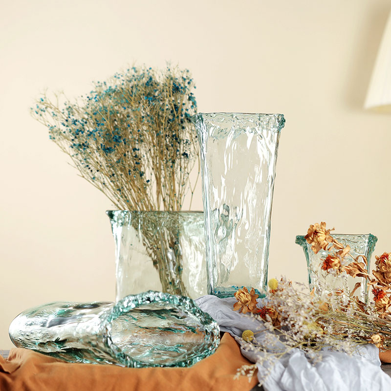 潘多拉玻璃花瓶 褶皱纹 浅蓝 h33cm