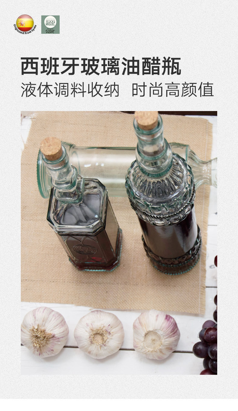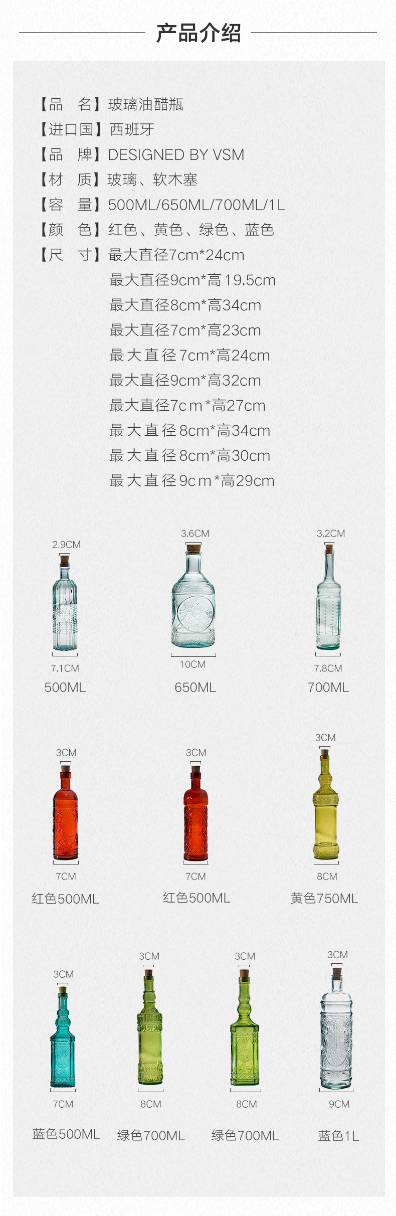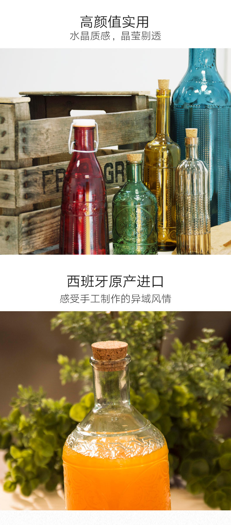 软木塞玻璃液体调味瓶 圆菱格 红色 500ml
