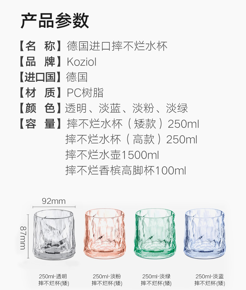 摔不烂 杯子 淡绿 250ml(h87mm)