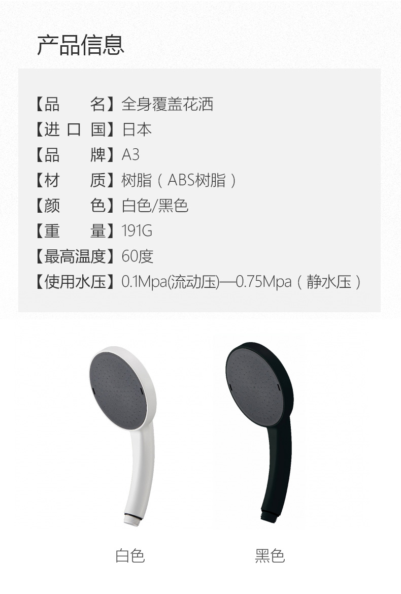 淋浴花洒-全身覆盖花洒-白色
