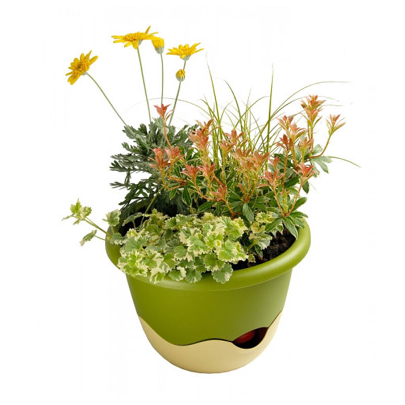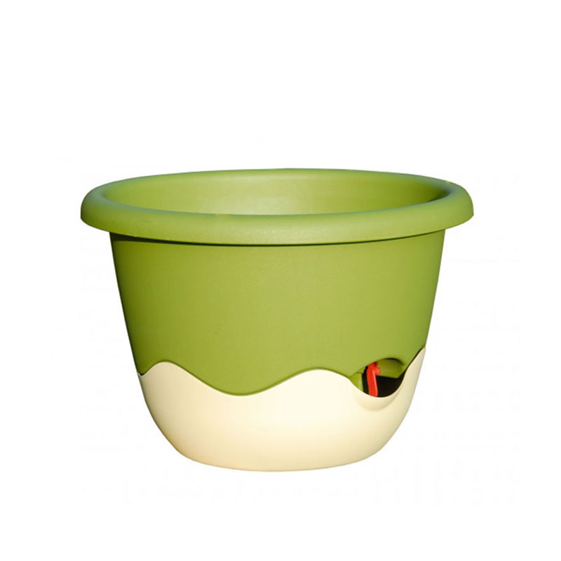 玛丽塔系列 自吸水圆形拼色花盆 白绿色 25cm