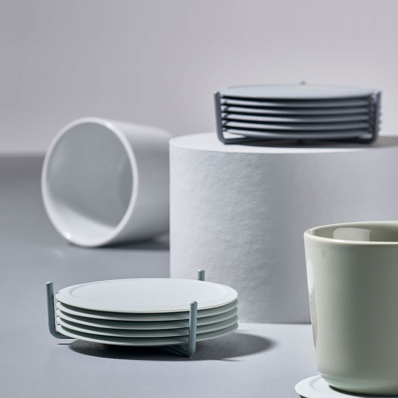硅胶圆杯垫套装(带金属收纳架) 暖灰色 10xh3.1 cm