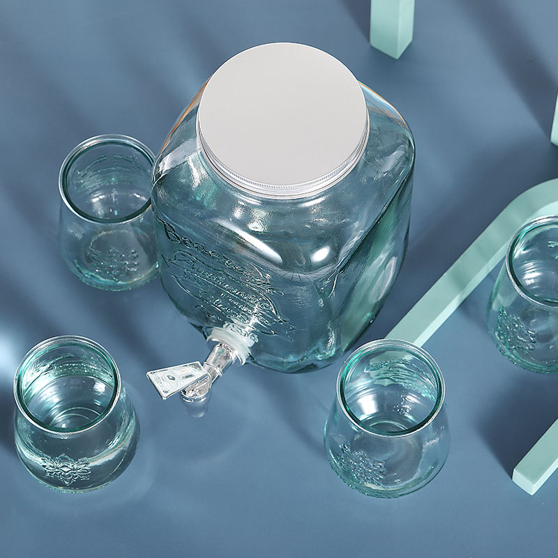 带水龙头玻璃水罐五件套 4L+400ml*4