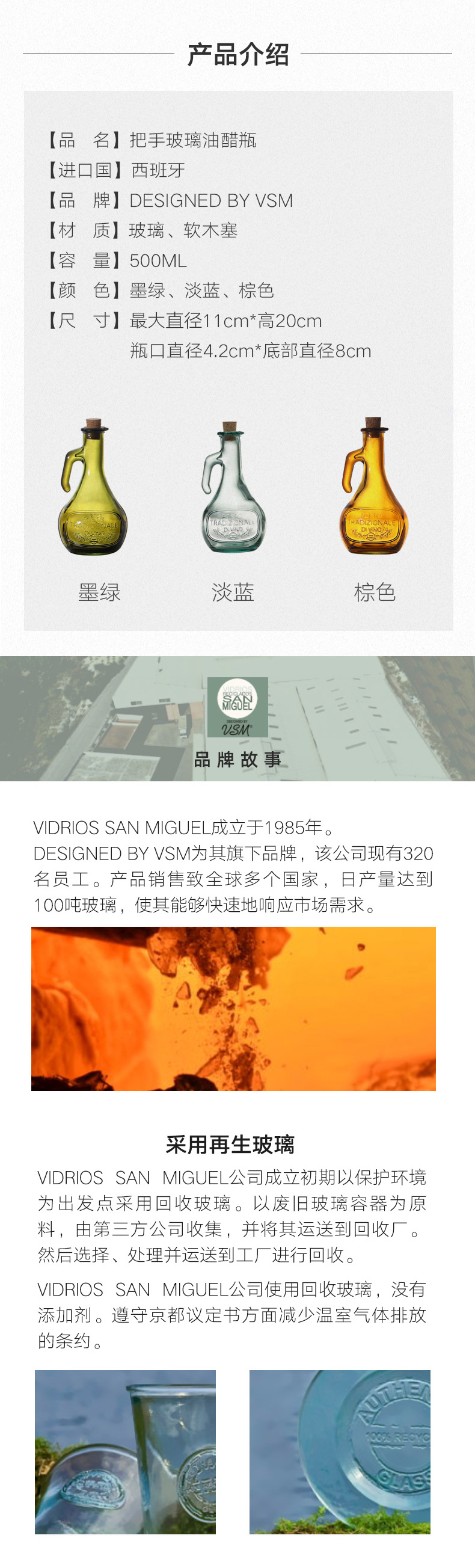 带把手玻璃液体调味瓶 TRADI 墨绿 500ml