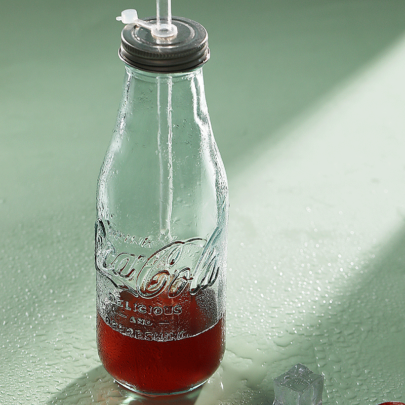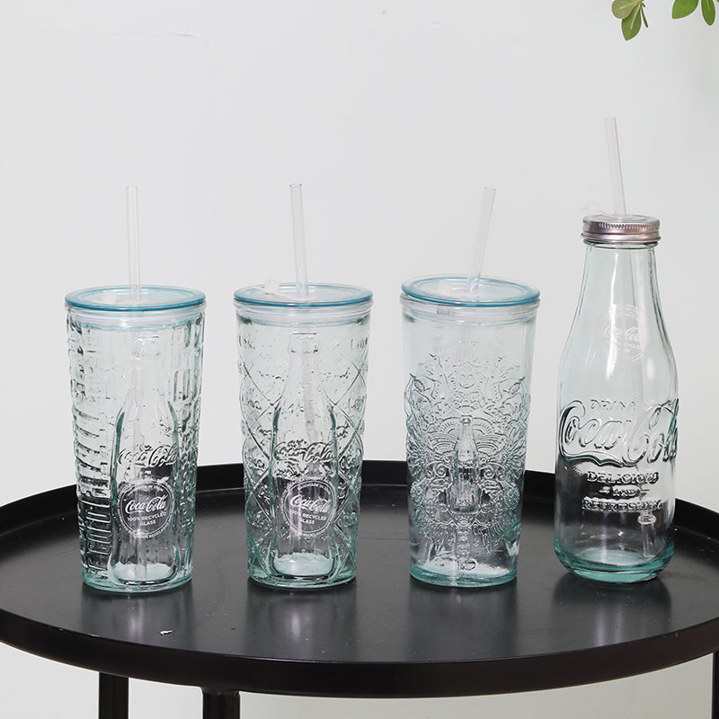 可口可乐吸管玻璃杯 浅蓝 h22cm 550ml