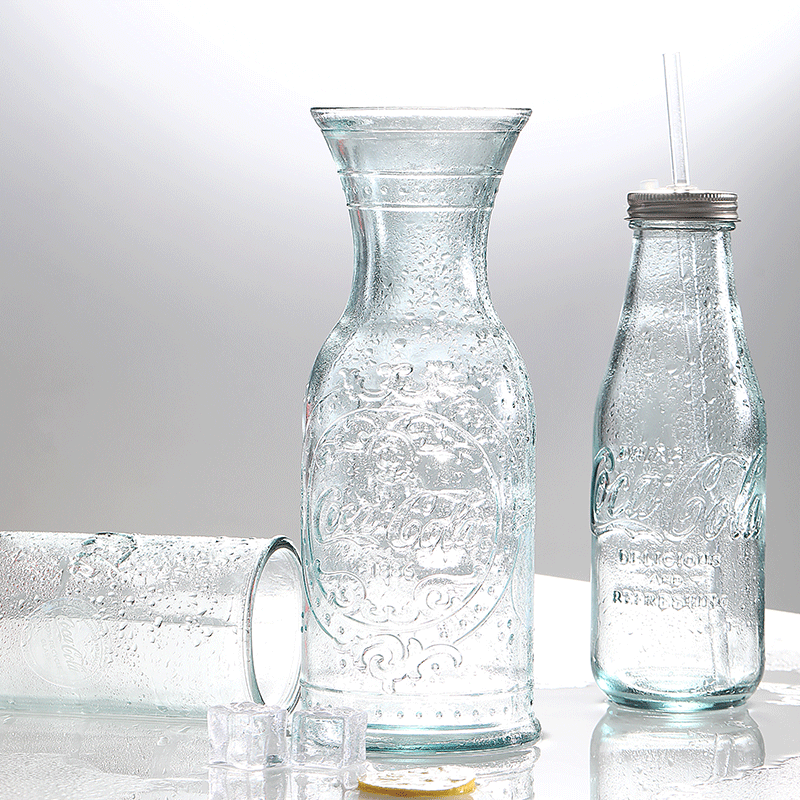 可口可乐玻璃随手杯 花纹 浅蓝 h25.5cm 1L