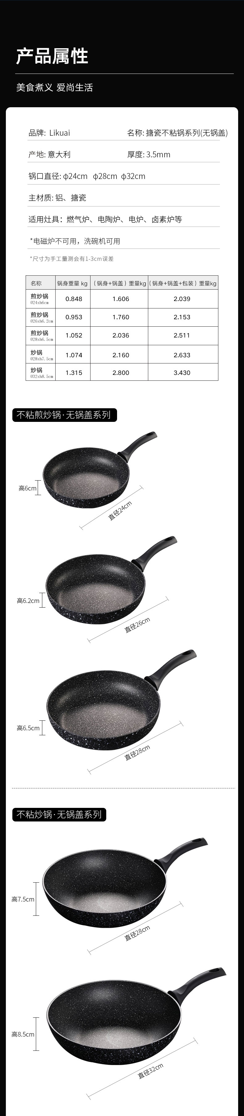 搪瓷不粘煎炒锅 Ø24xH6cm (无锅盖)