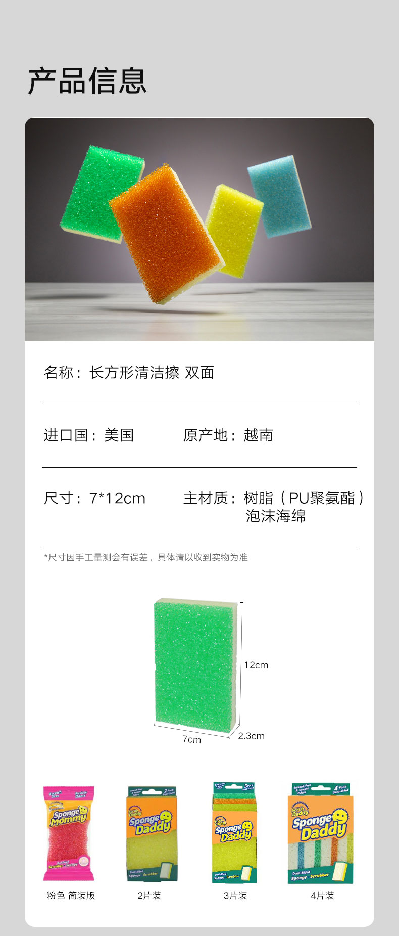 长方形清洁擦 网状强力 3片装