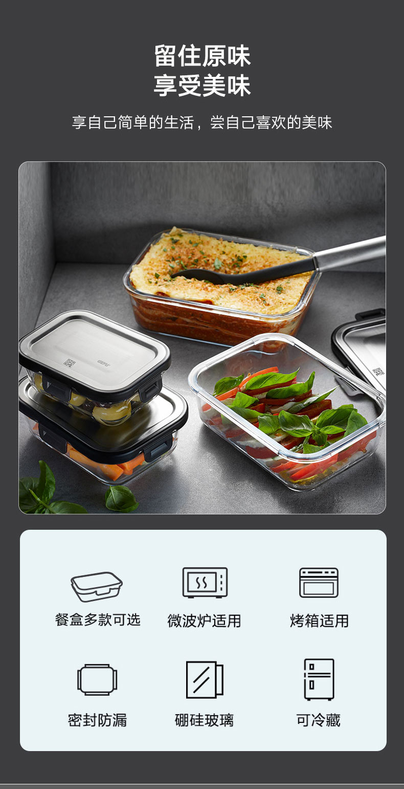 玻璃餐盒储物盒 长方形 400ml L15.4 * W11.3 * H 5.6 cm