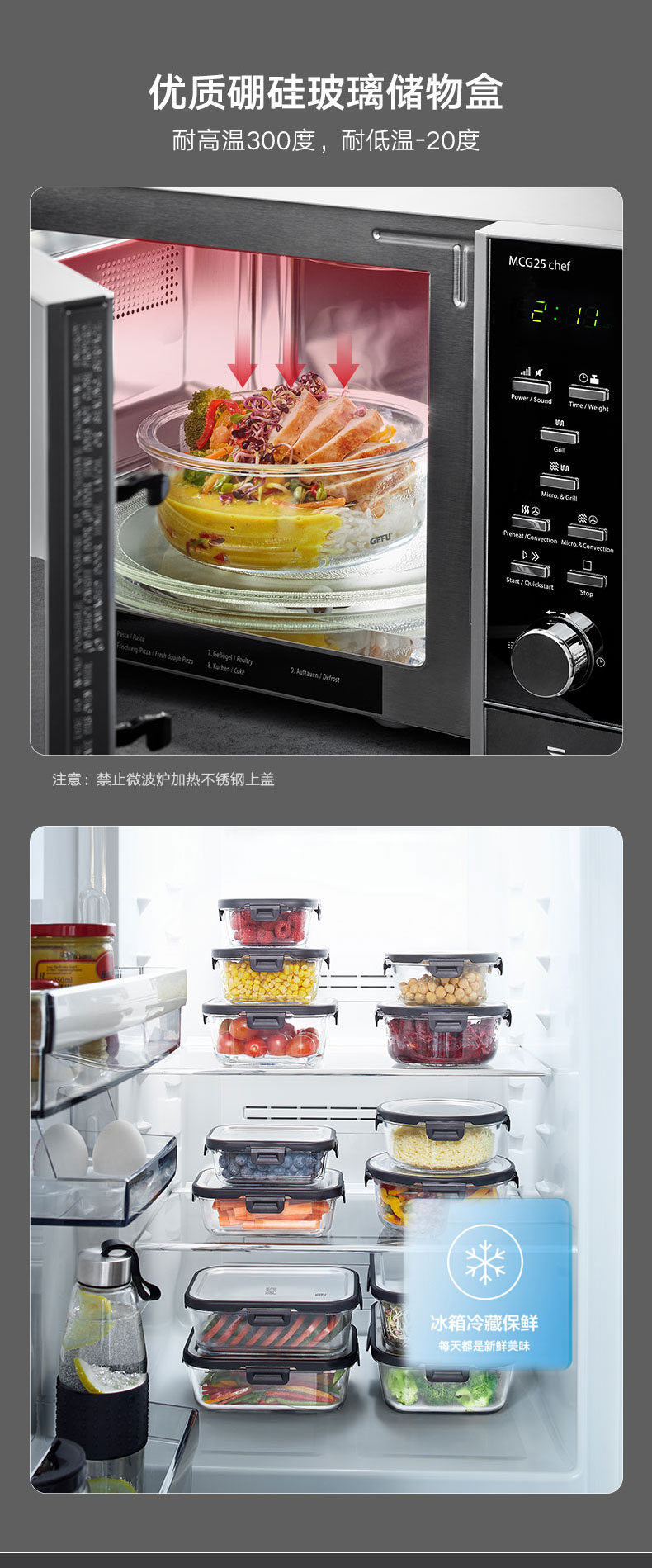 玻璃餐盒储物盒 长方形 1000ml L20.7 * W15.5 * H 6.9 cm