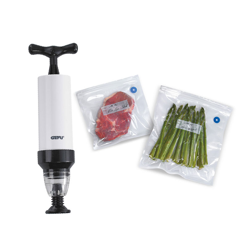 厨房抽真空袋套装 (抽真空泵L26*W5*H6.3cm)(可循环使用大袋子5个26 x 28 cm / 3000 ml)(可循环使用小袋子5个22 x 21 cm / 1300 ml)
