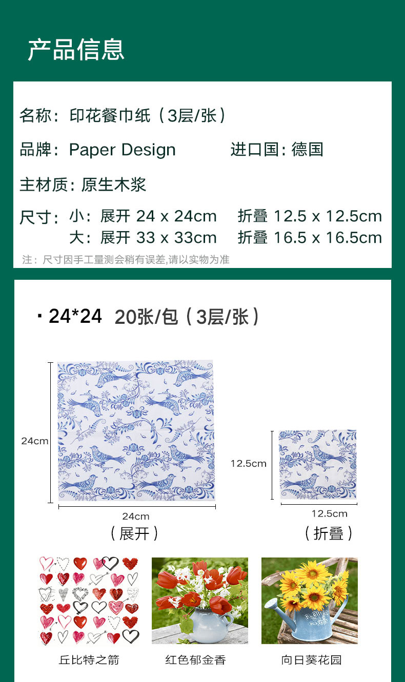 印花餐巾纸 24*24cm 20张(3层/张)粉色甜蜜