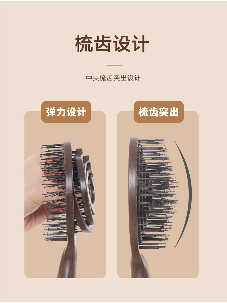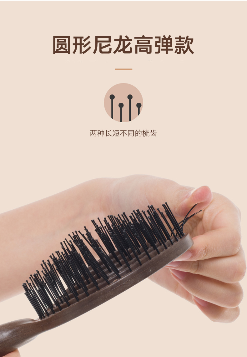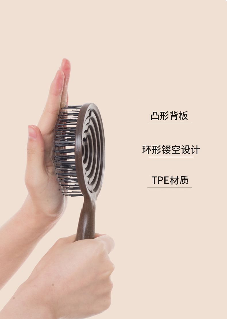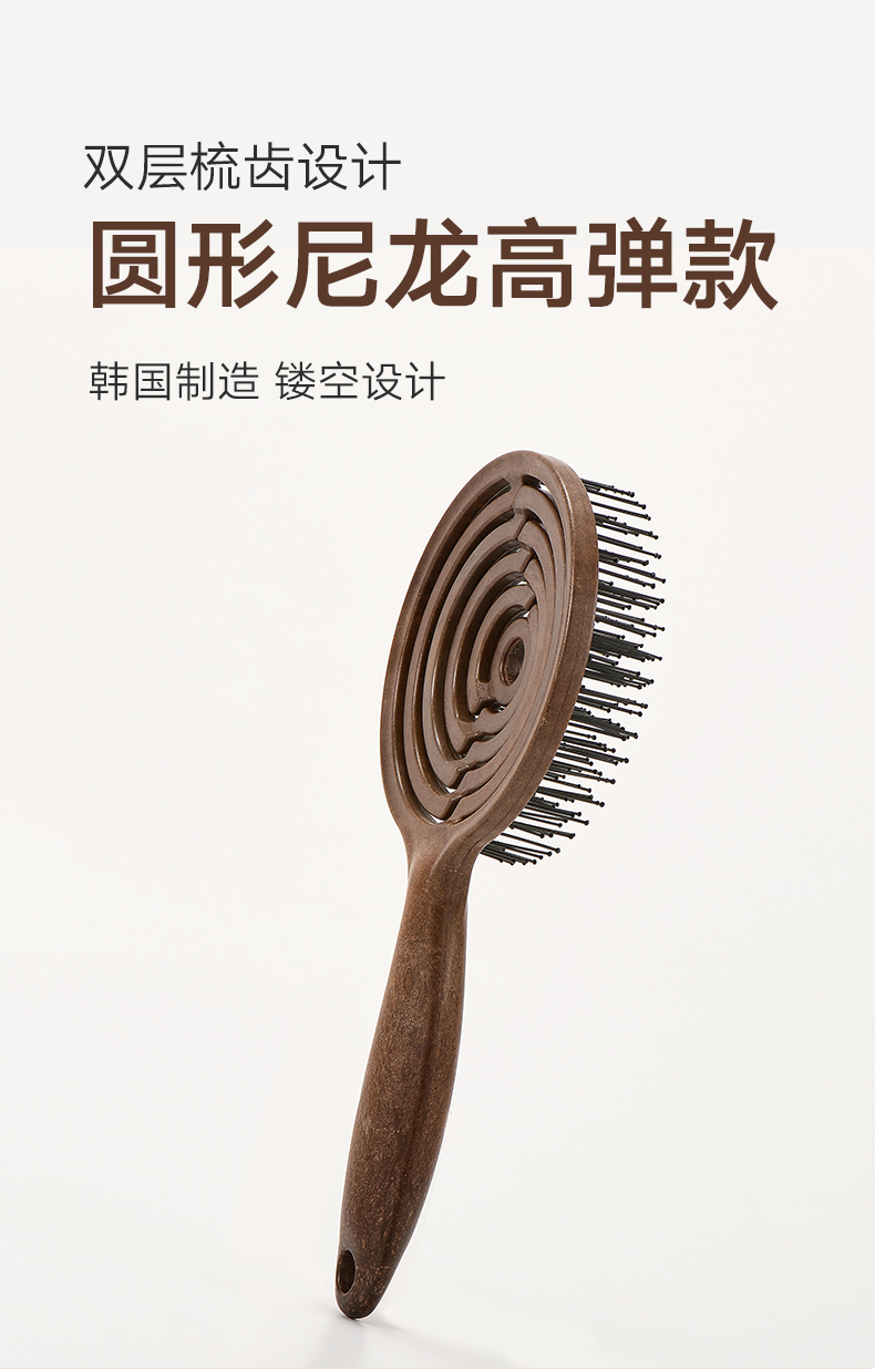 镂空按摩梳 圆形尼龙高弹款 深咖色