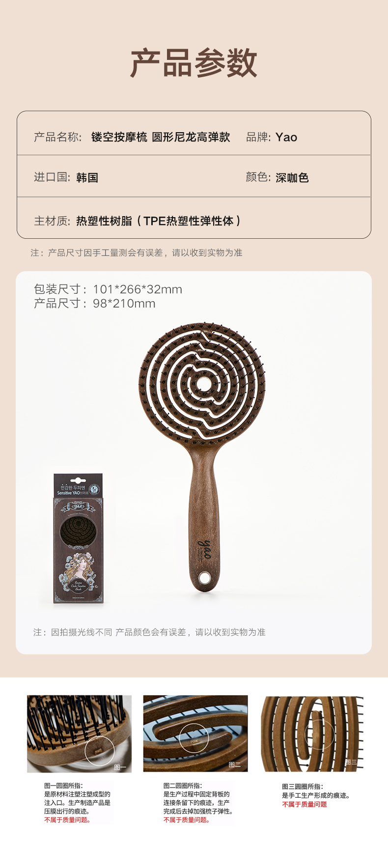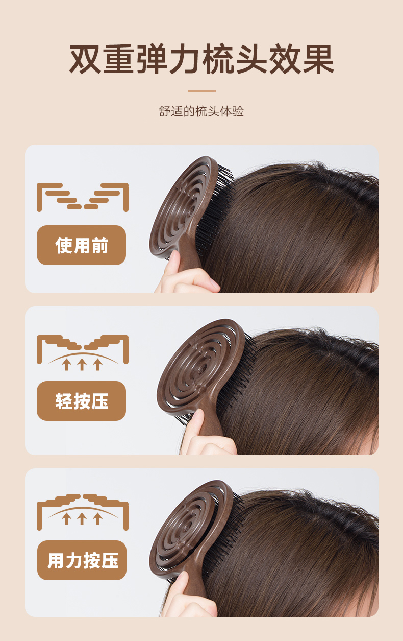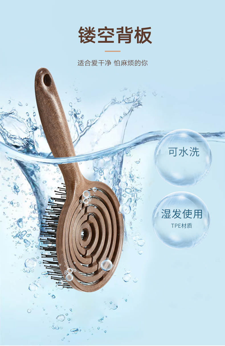 镂空按摩梳 圆形尼龙高弹款 深咖色