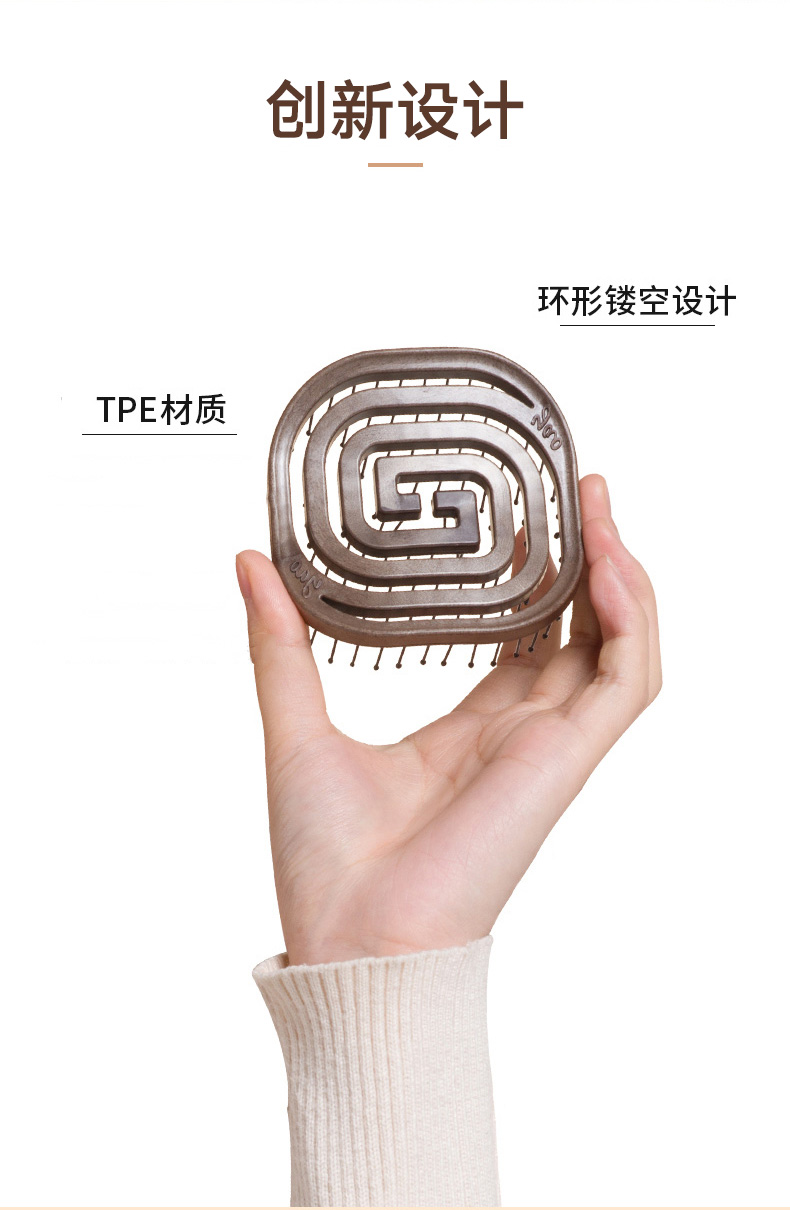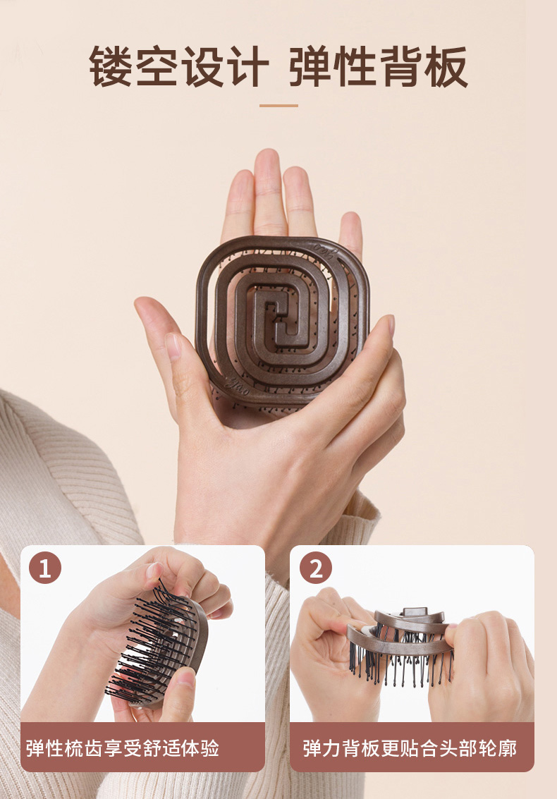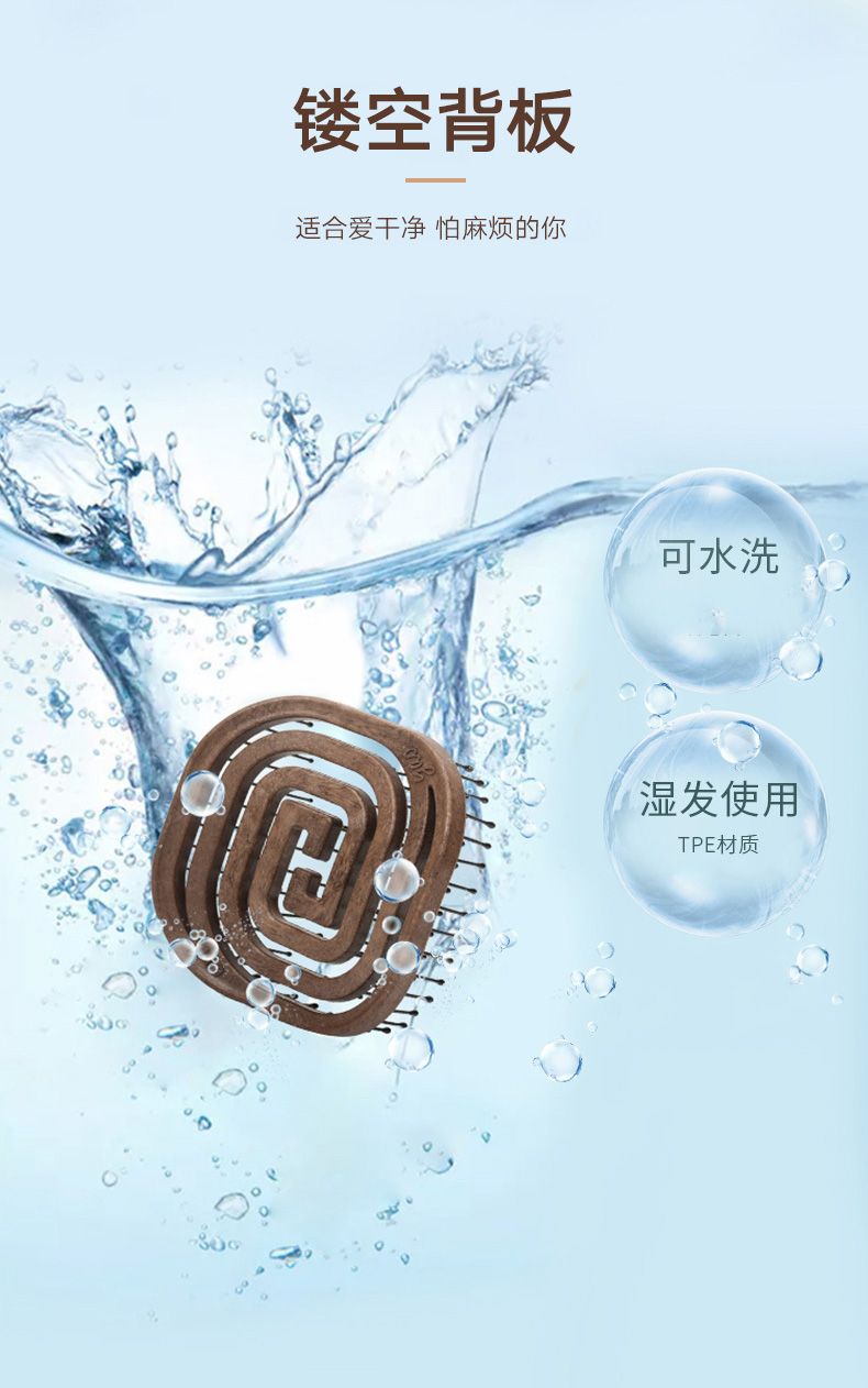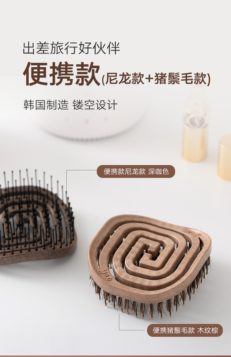 镂空按摩梳 便携猪鬃毛款 木纹棕