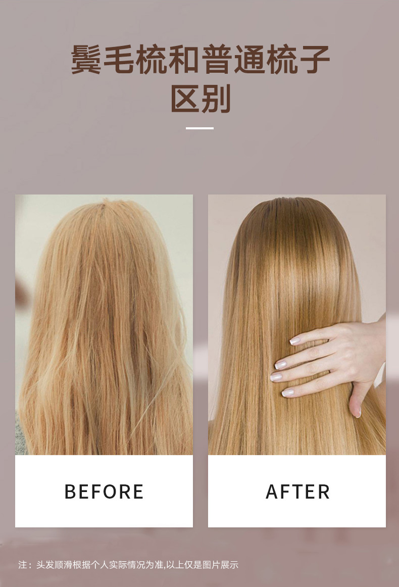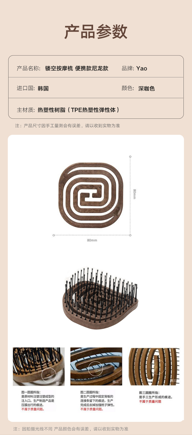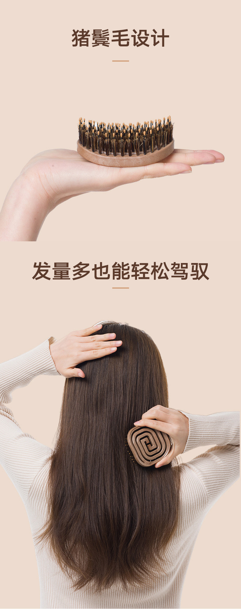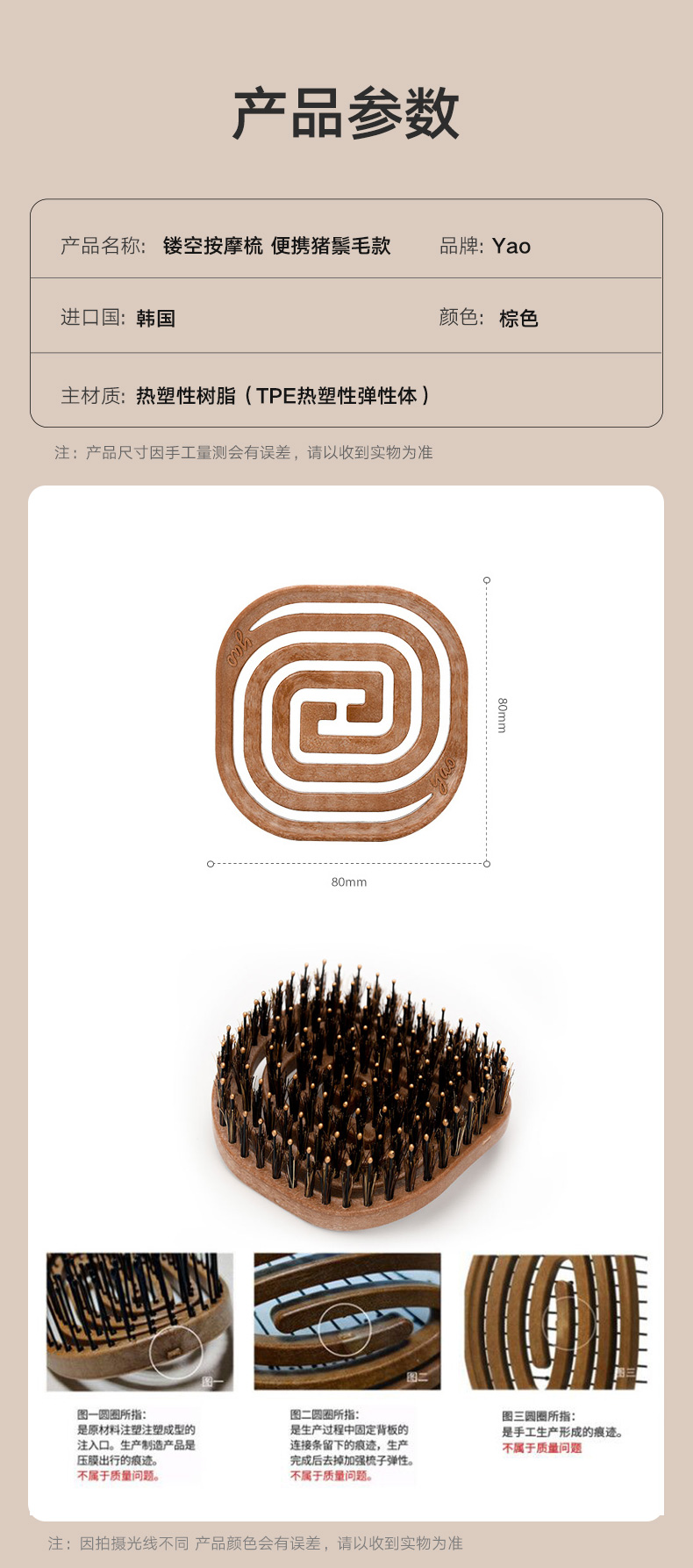 镂空按摩梳 便携猪鬃毛款 木纹棕