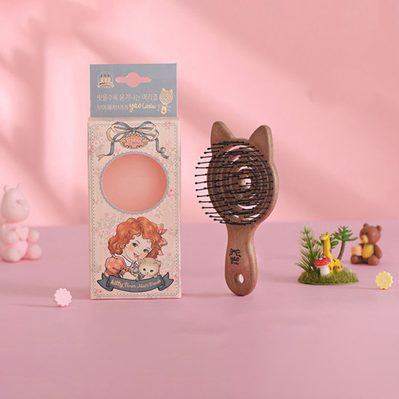 镂空按摩梳 Kitty尼龙款 木纹棕