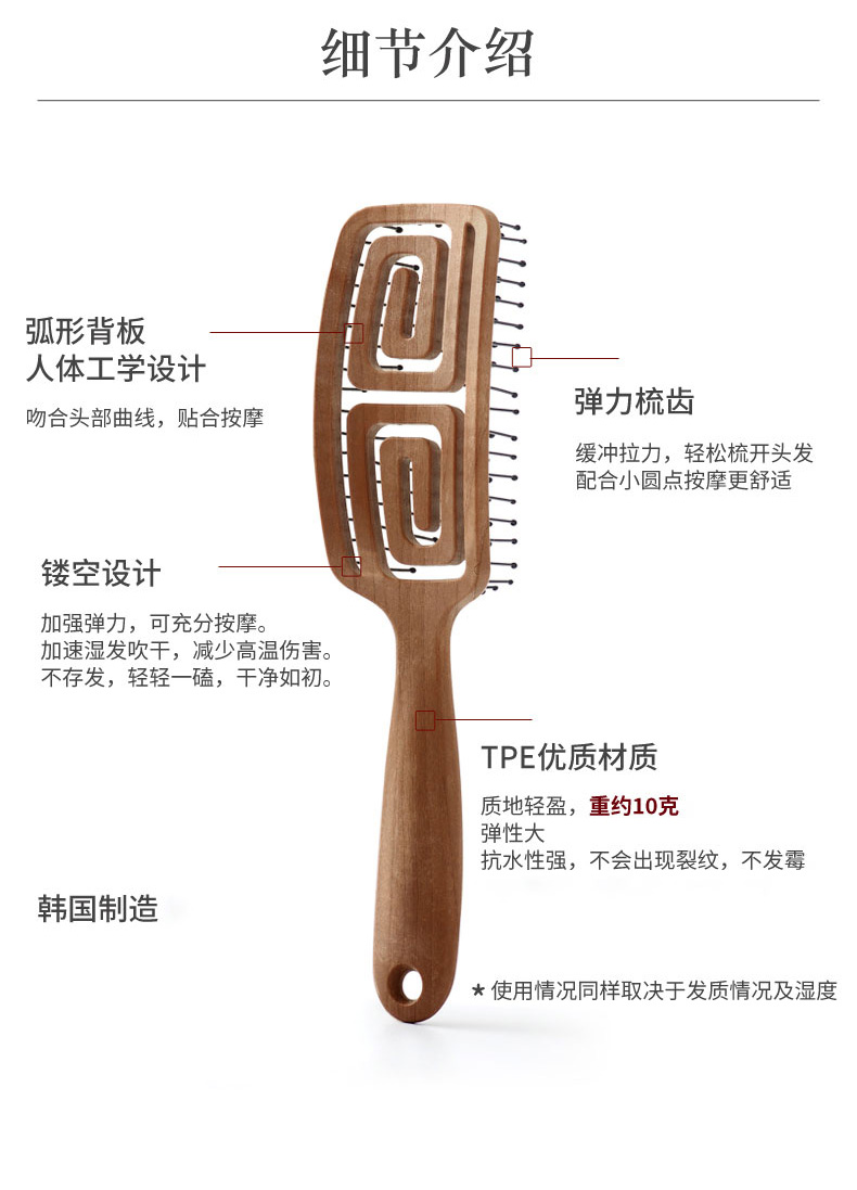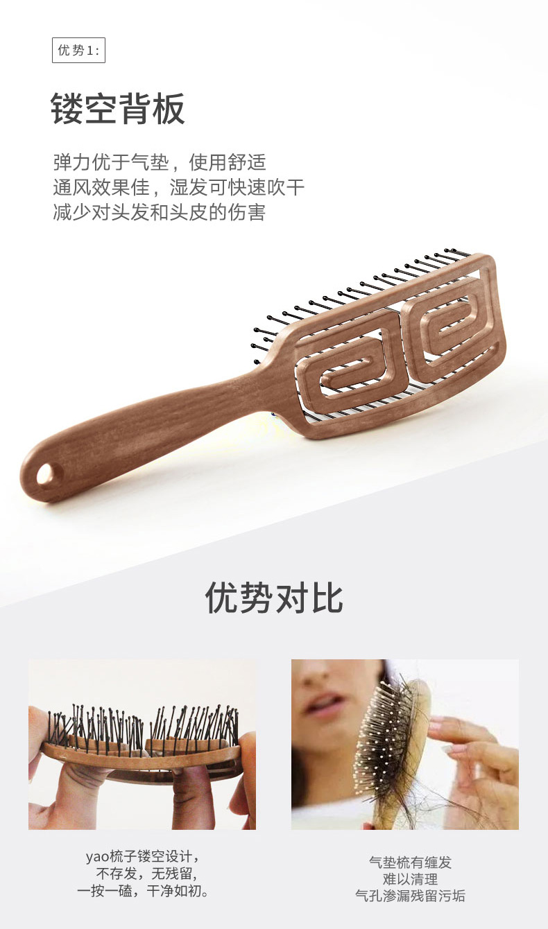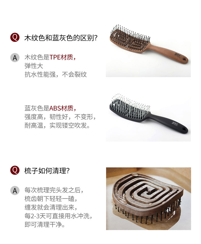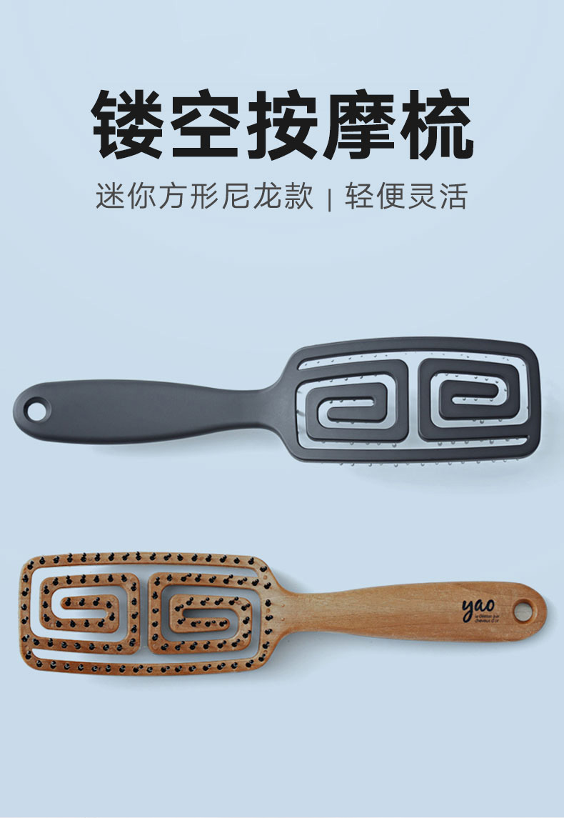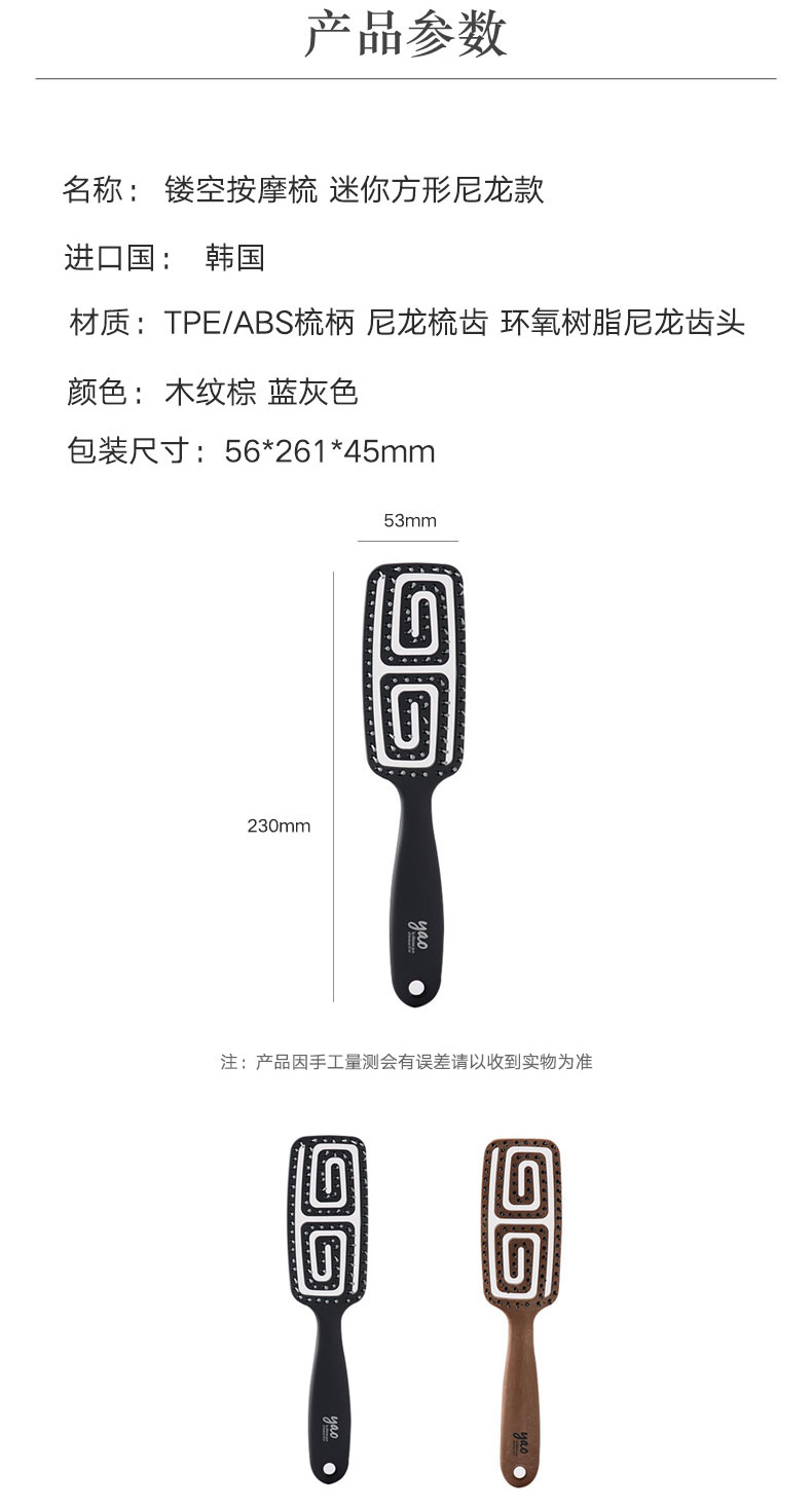 镂空按摩梳 迷你方形尼龙款 蓝灰色