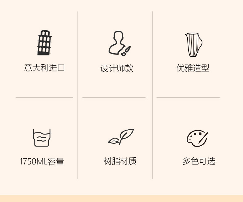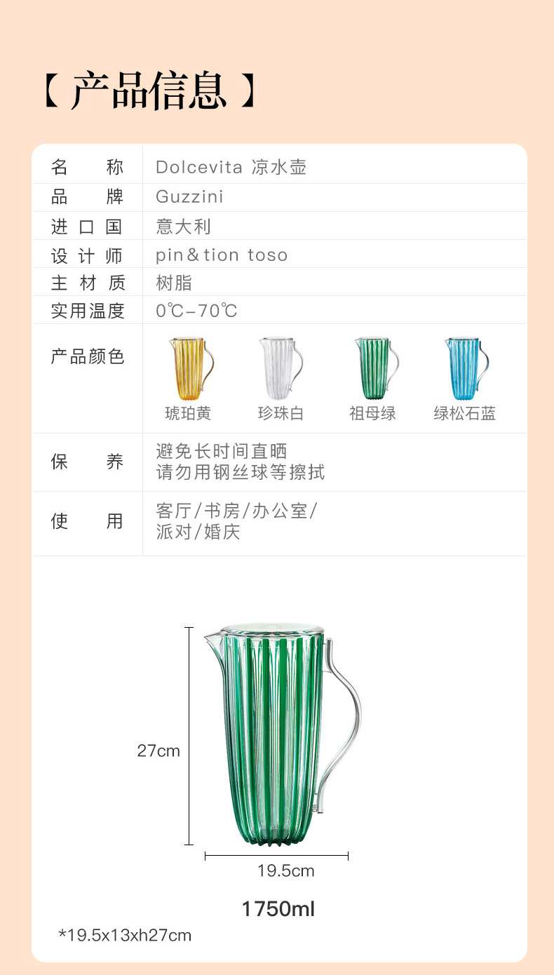 Dolcevita 凉水壶 绿松石蓝 1750ml 19.5x13xh27cm