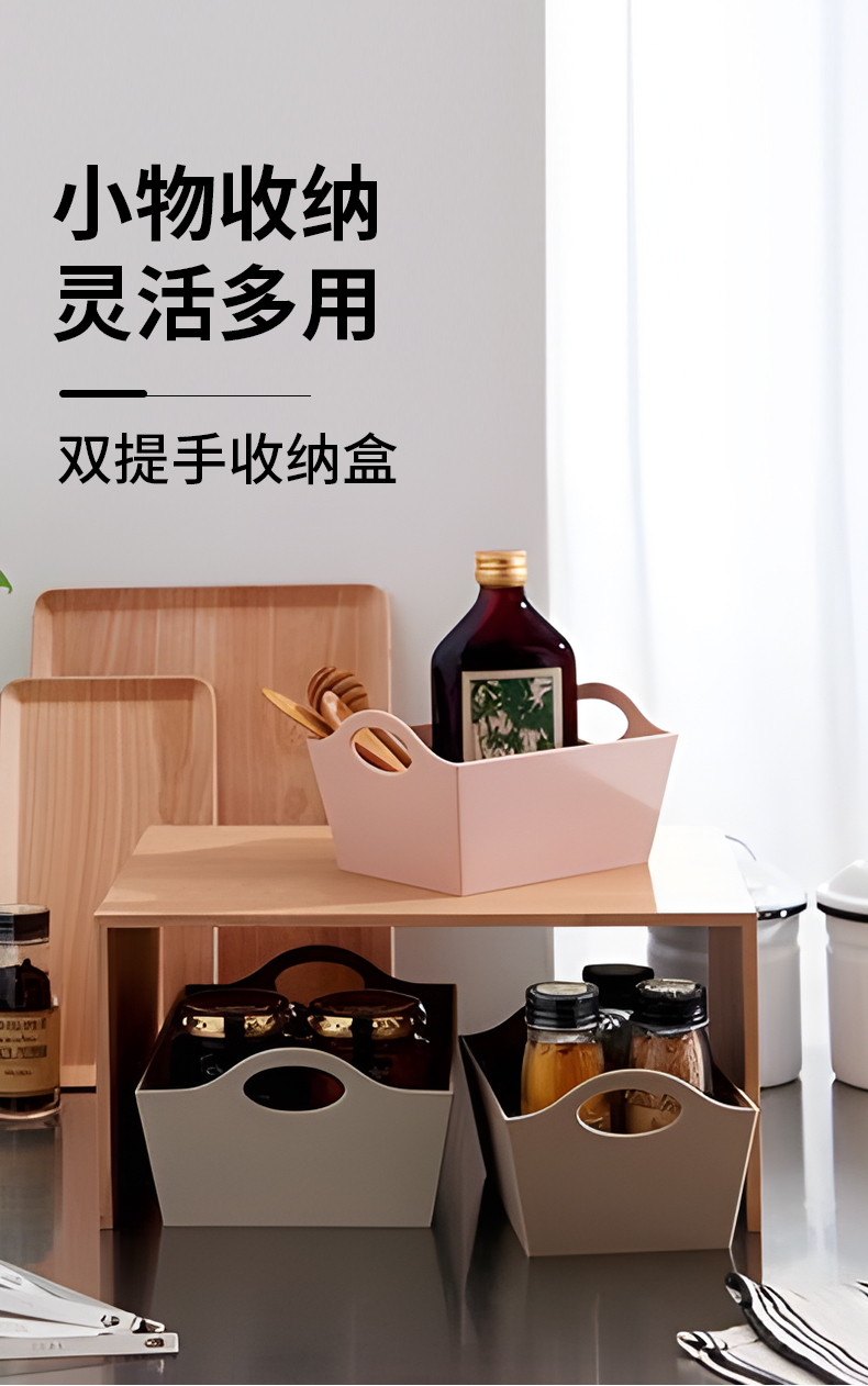 双提手收纳盒 (S) 三个装 earth piece 米色