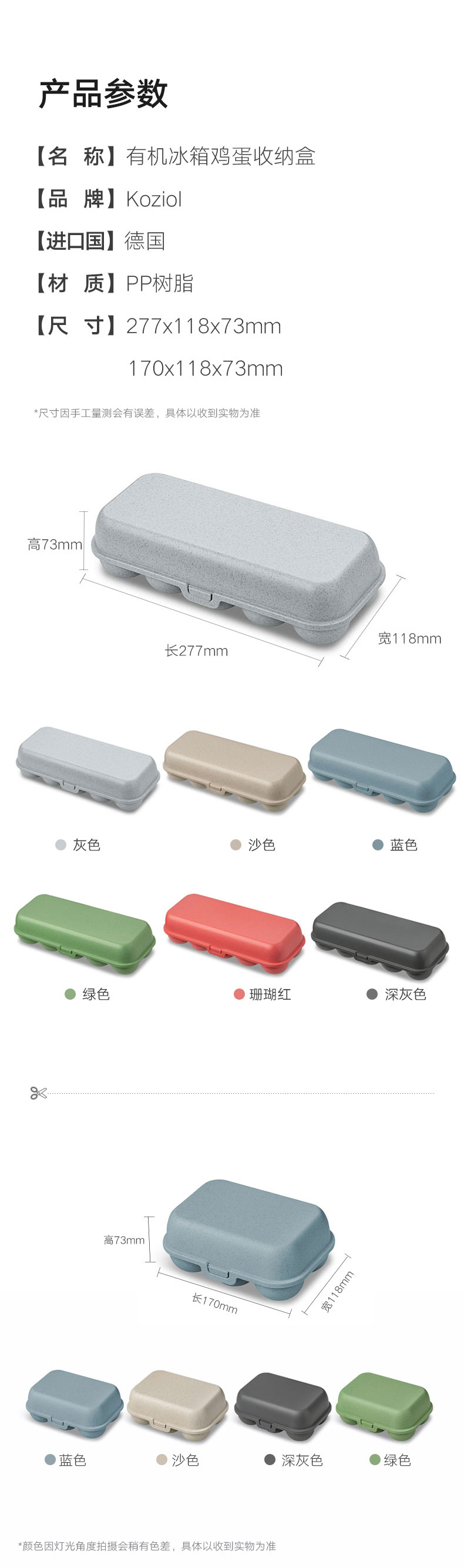 有机冰箱鸡蛋收纳盒 深灰 170x118x73mm
