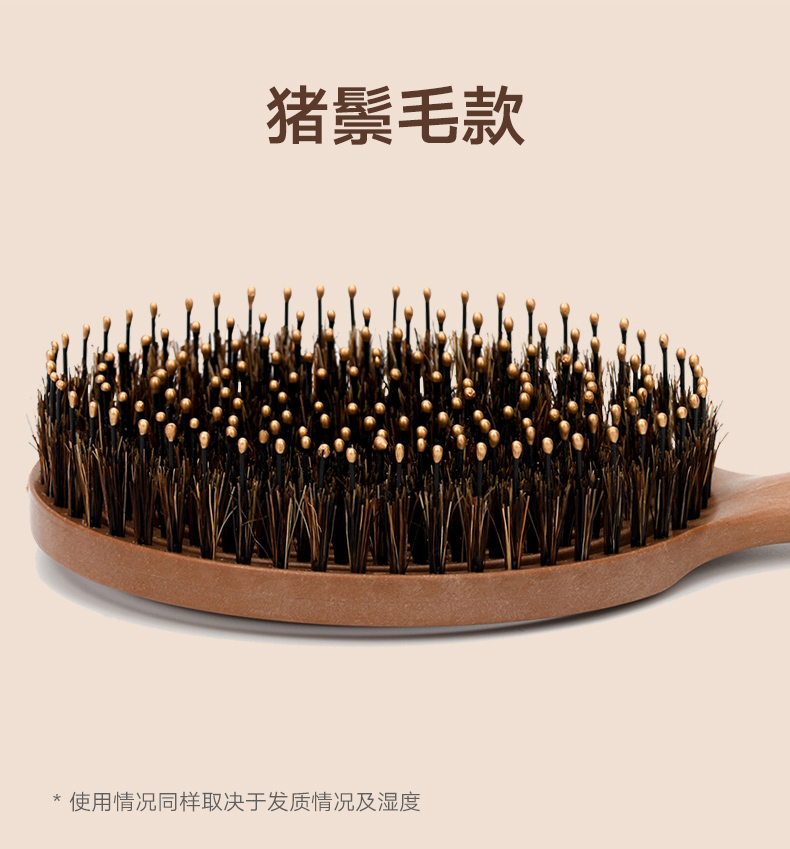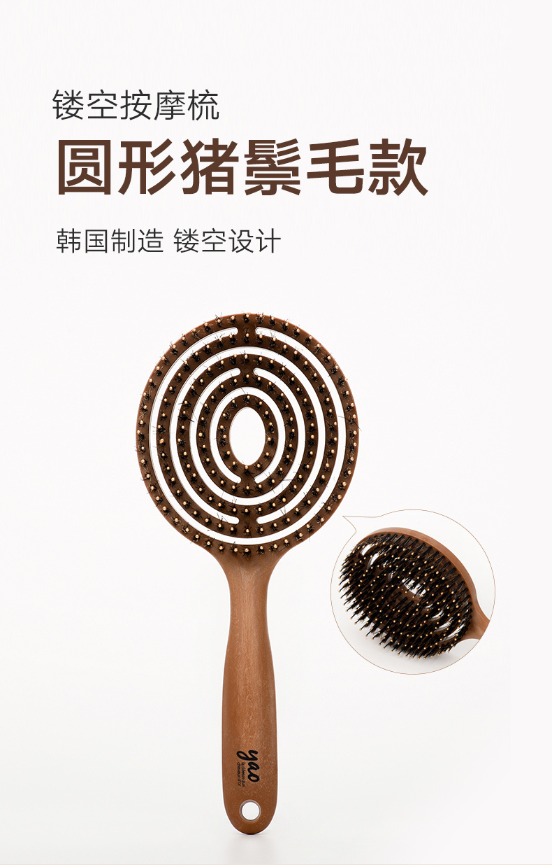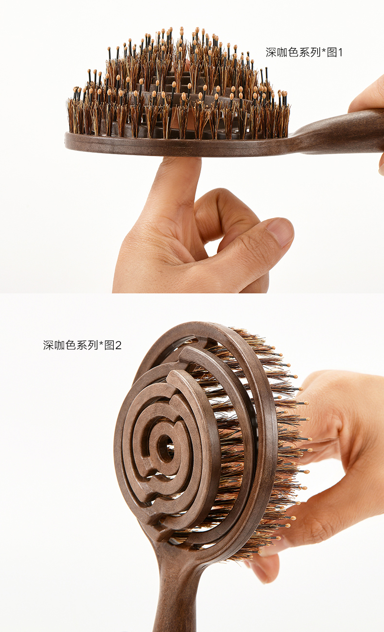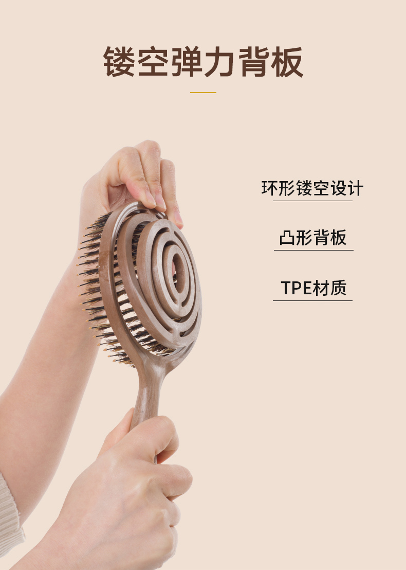 镂空按摩梳 圆形猪鬃毛高弹款 深咖色