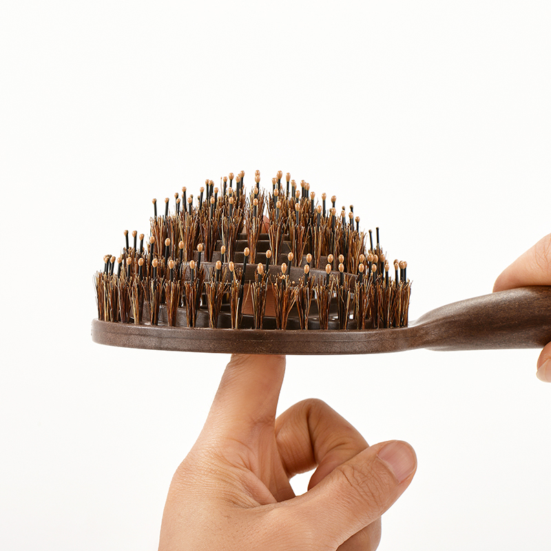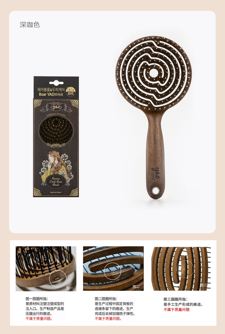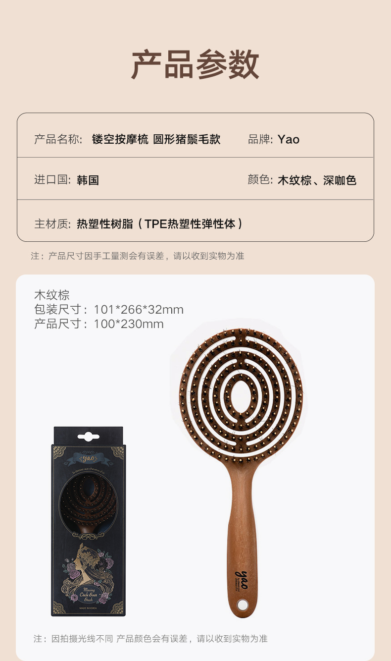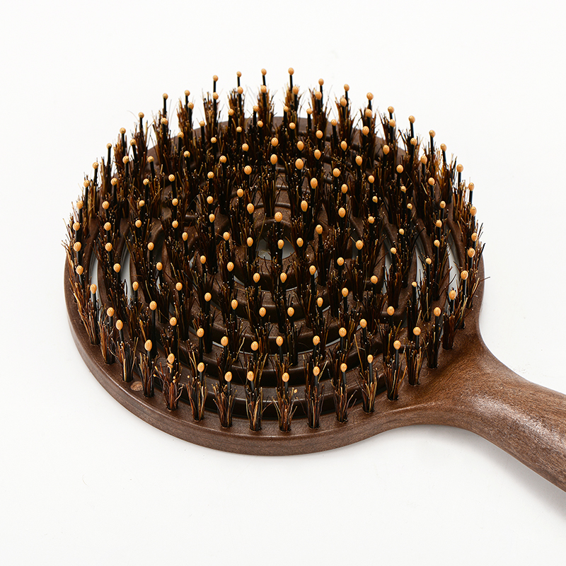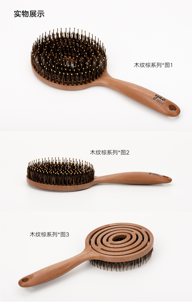 镂空按摩梳 圆形猪鬃毛高弹款 深咖色