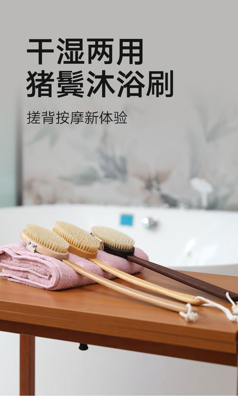 沐浴按摩刷 碳化木猪鬃 长柄