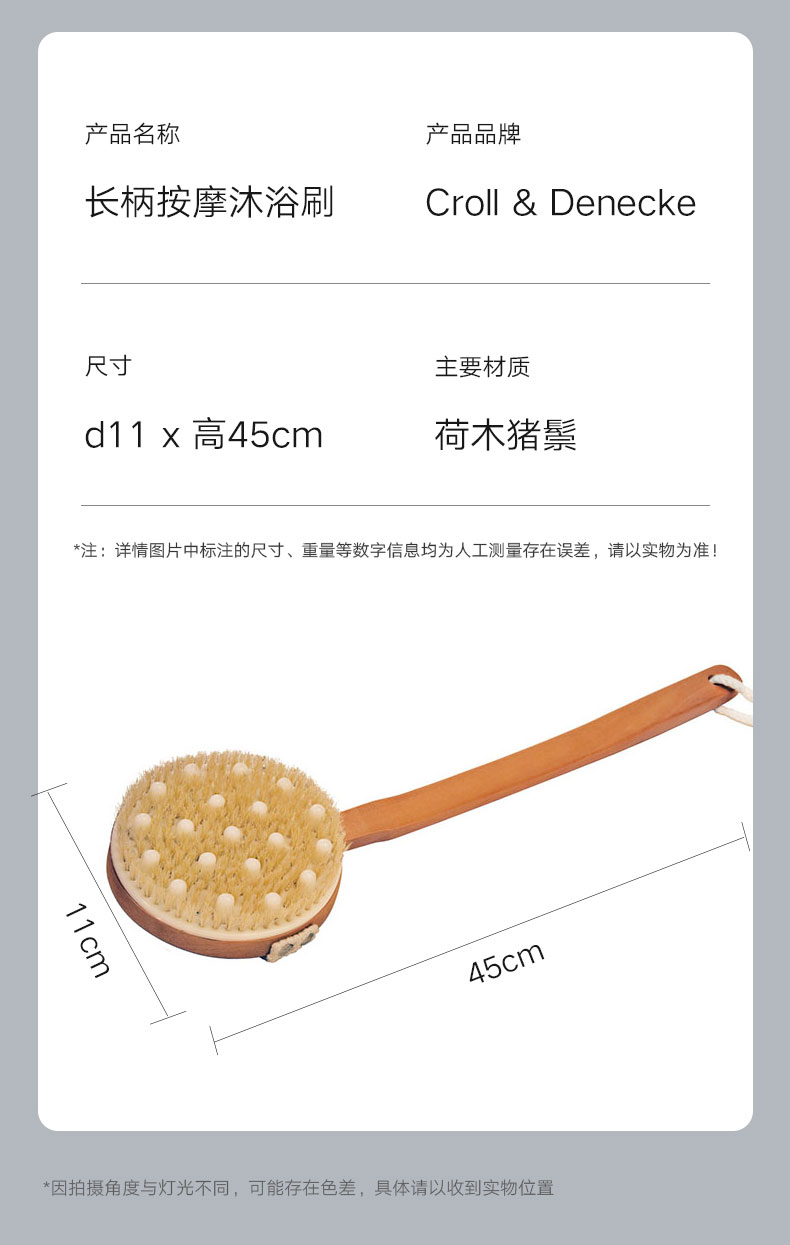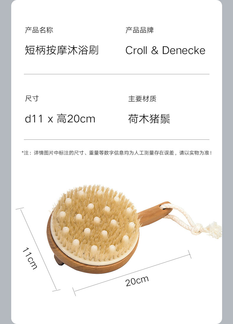 圆柄按摩沐浴刷 荷木猪鬃 d11cm