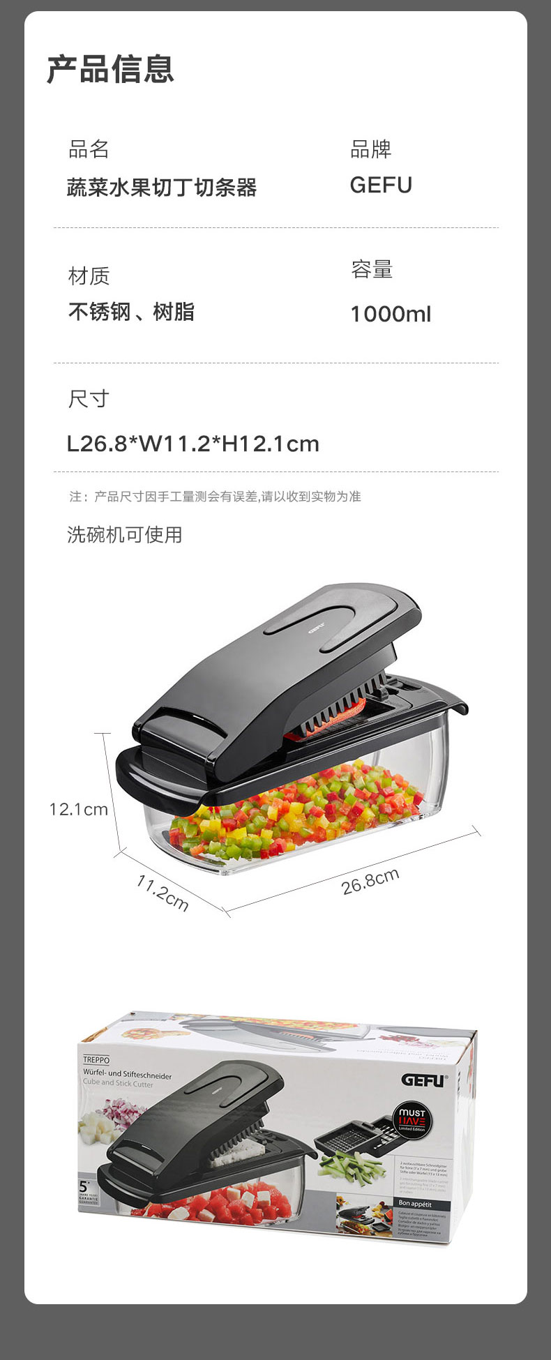 蔬菜水果切丁切条器 1000ml L26.8*W11.2*H12.1cm