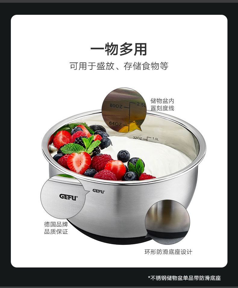 不锈钢储物盆三件套 1L+2.5L+4.5L
