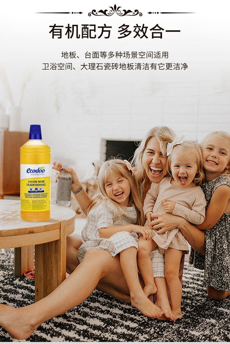 有机低泡多用途黑肥皂地板宠物清洁剂 1L