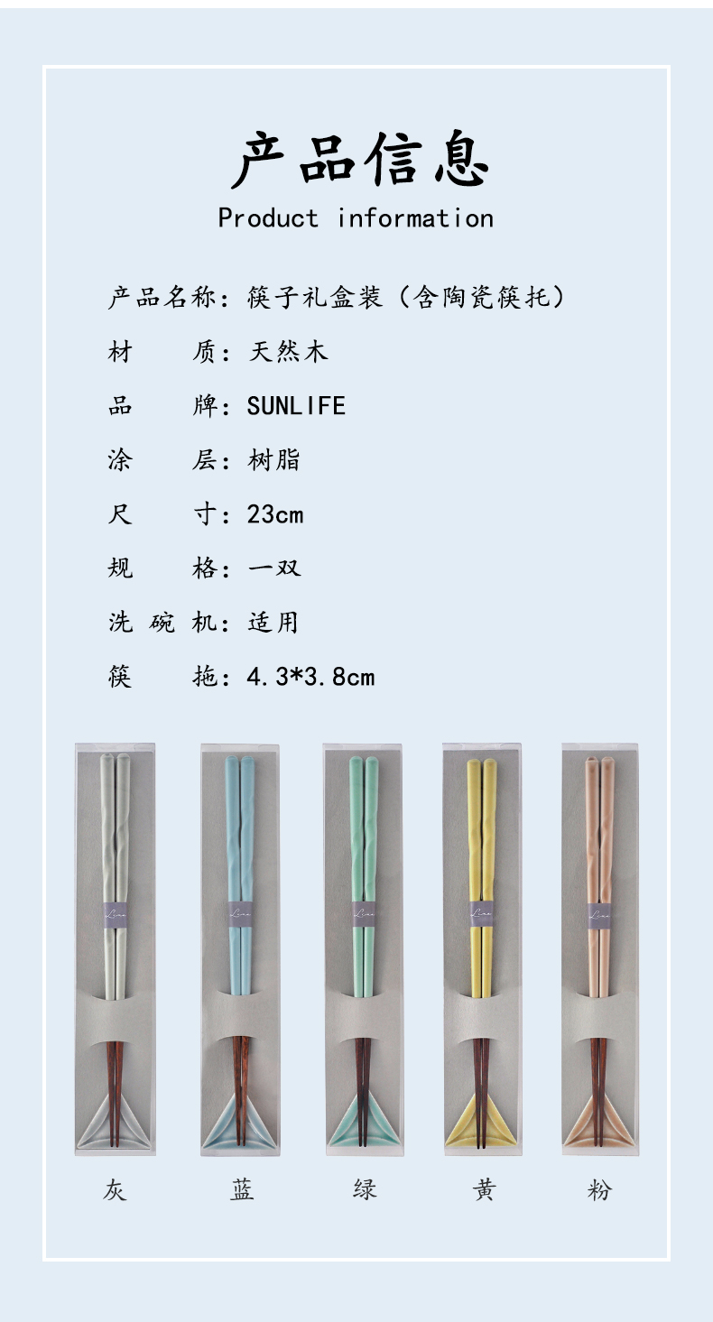 • 规格:筷子:23cm 筷子托:4.3*3.8cm
