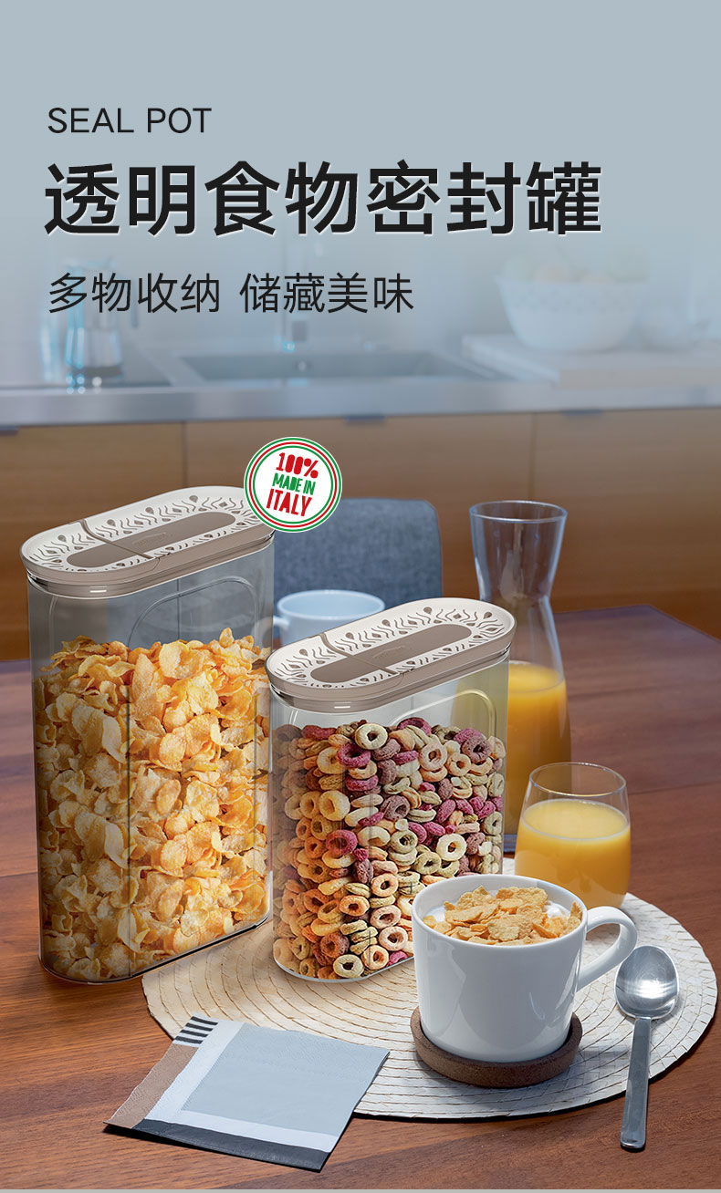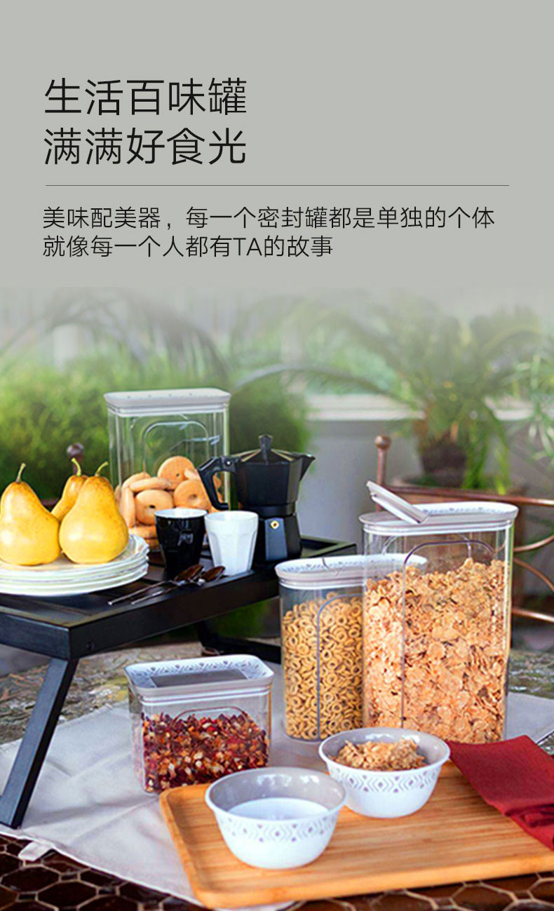 长方形透明食物密封罐 鸽子灰 Tosca 0.7L
