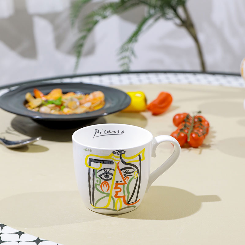 马克杯 广口V大饮杯 几何方片 600ml