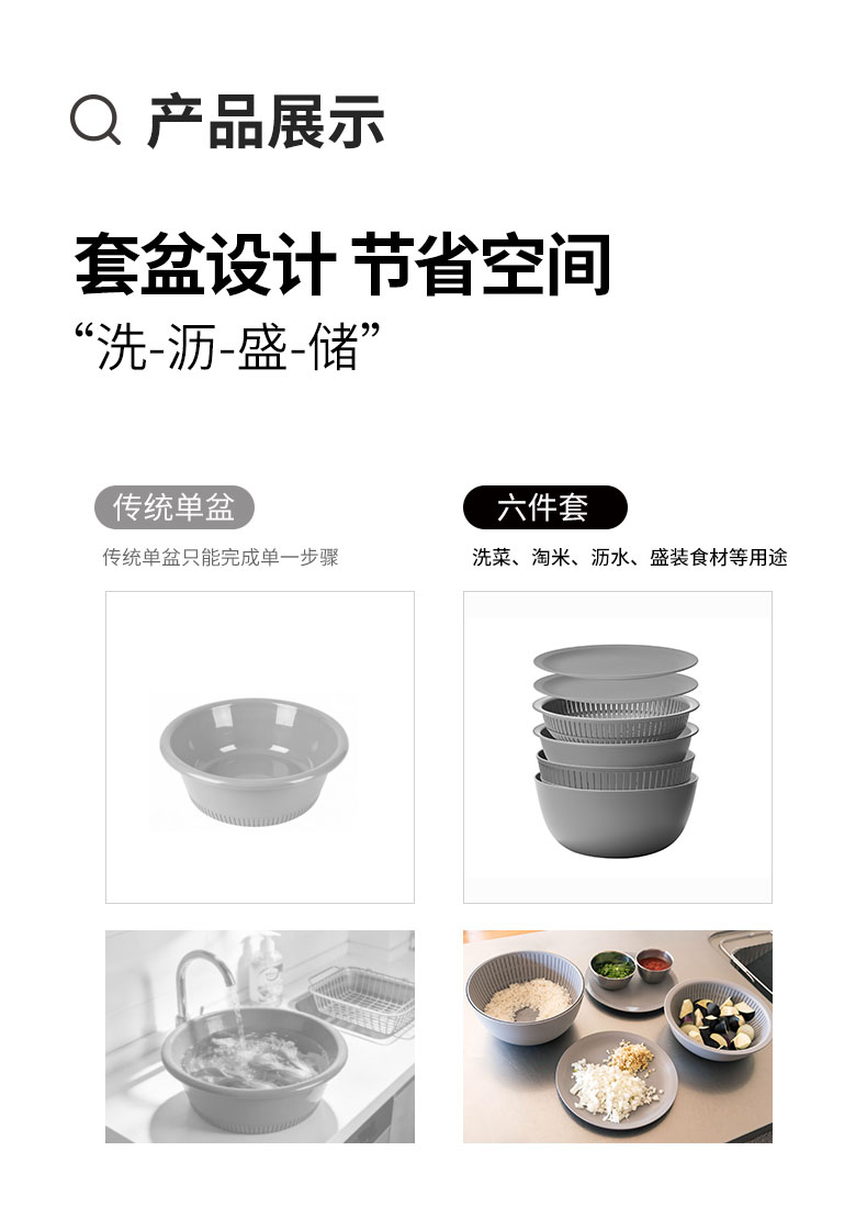 洗菜淘米盆六件套 米色