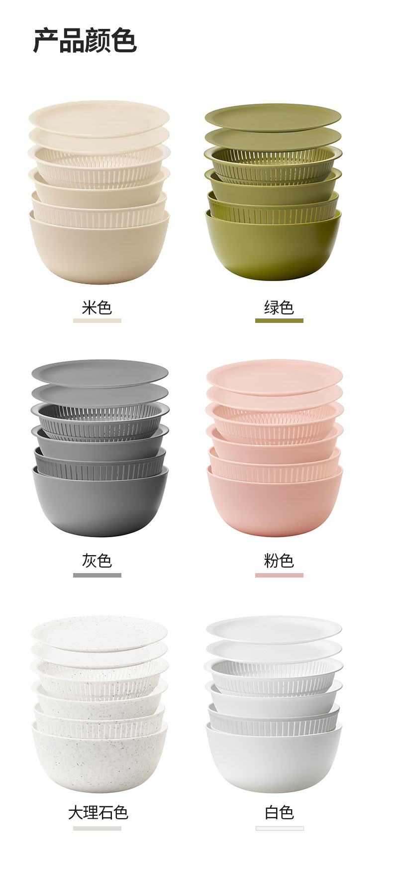 洗菜淘米盆六件套 大理石色
