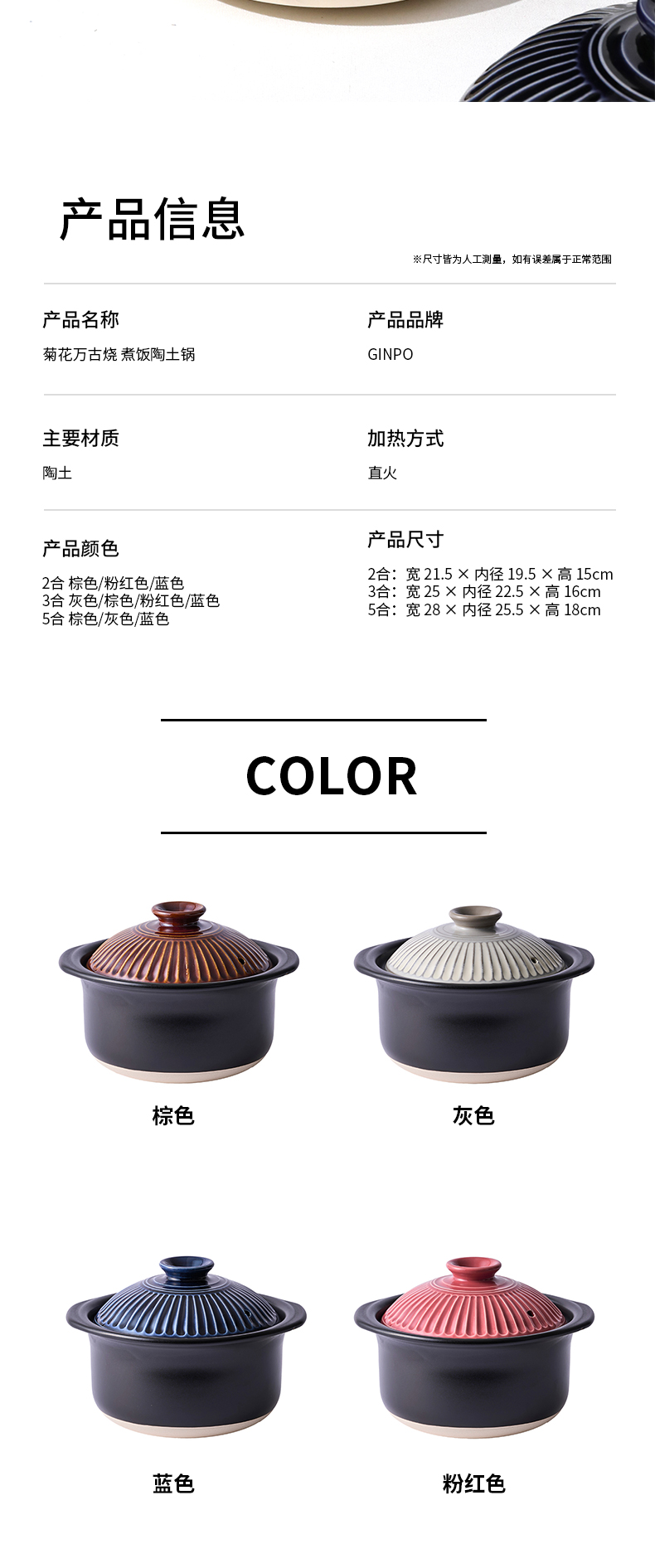 菊花多功能陶土锅 2合 1.2L 蓝色 21.5cm x H15cm