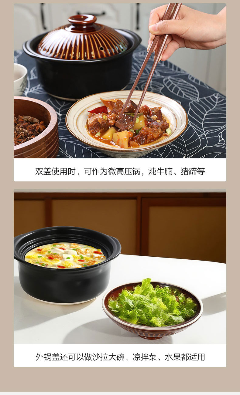 菊花多功能陶土锅 2合 1.2L 粉红色 21.5cm x H15cm