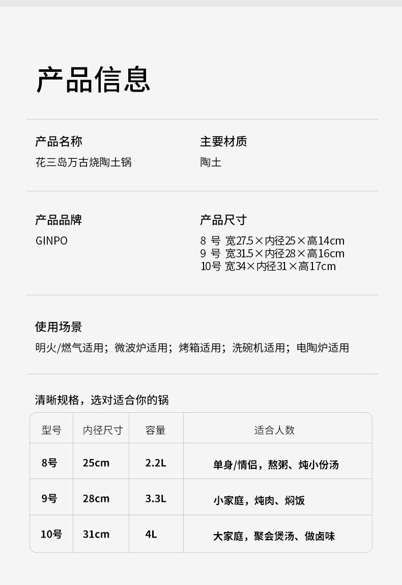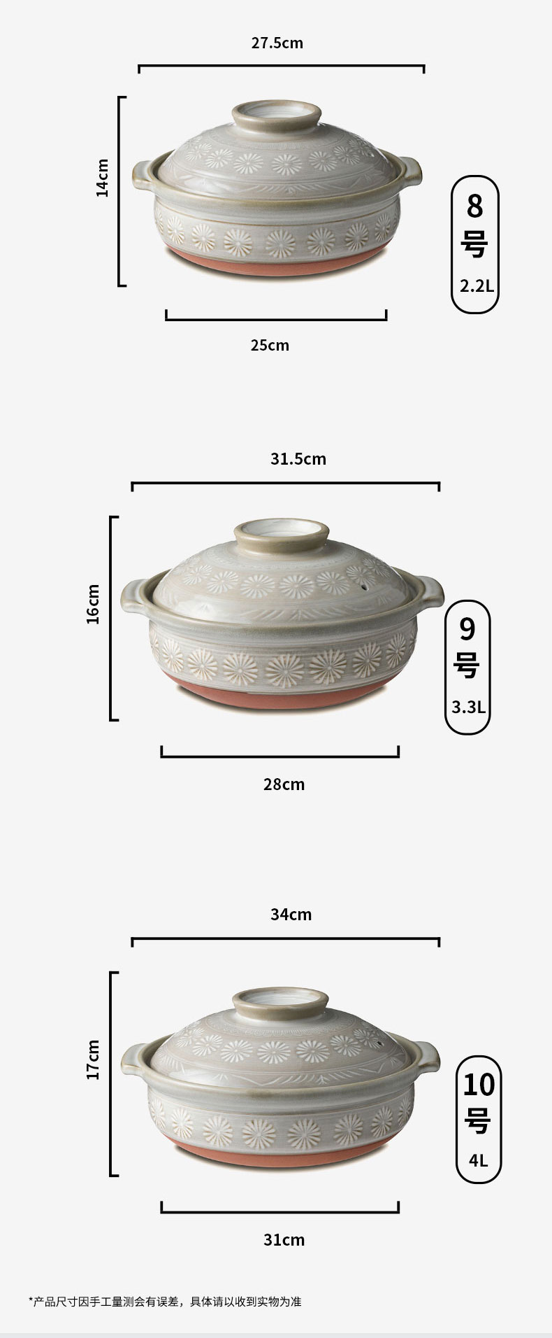 花三岛陶土锅8号2.2L 27.5cm x H14cm