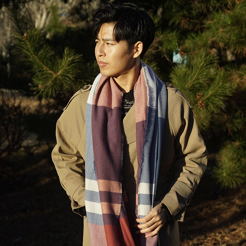 格纹披肩围巾 粉色