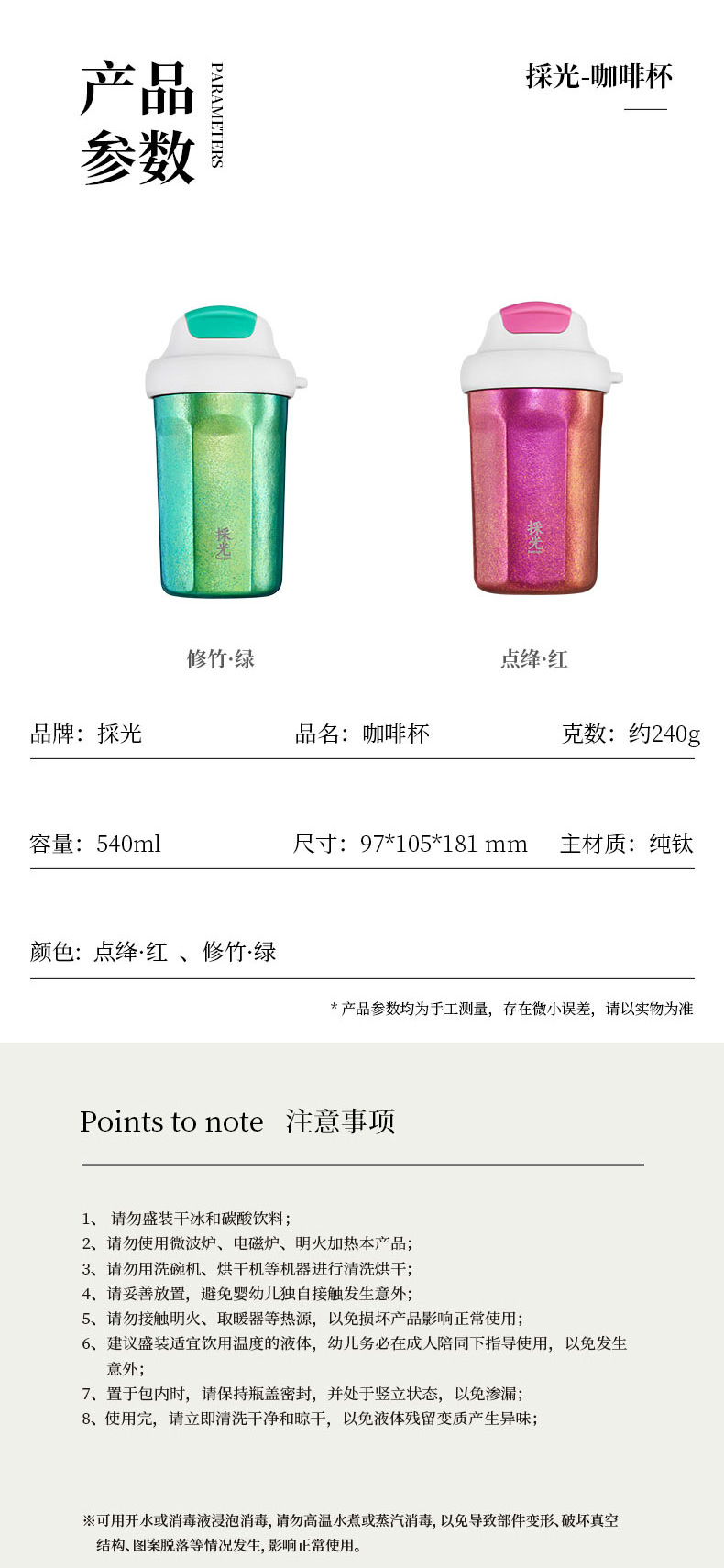 纯钛咖啡杯修竹绿 540ml