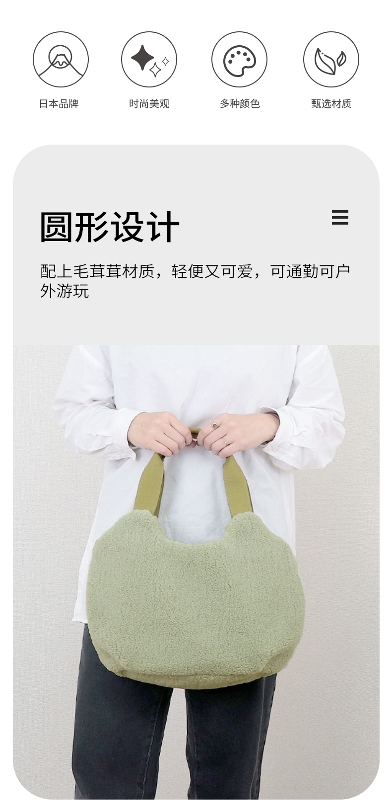 毛绒圆形时尚手提包 米白色